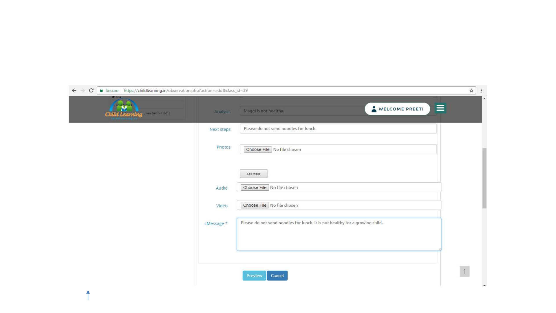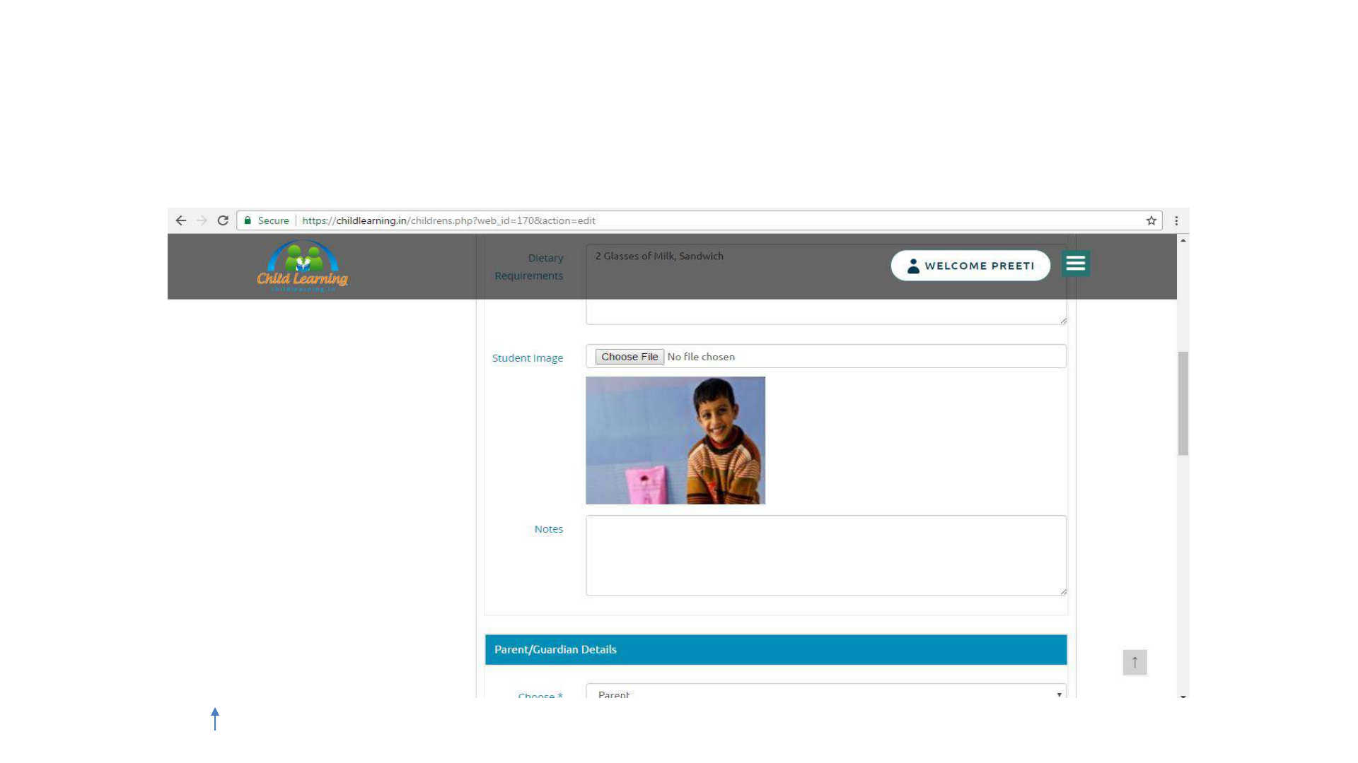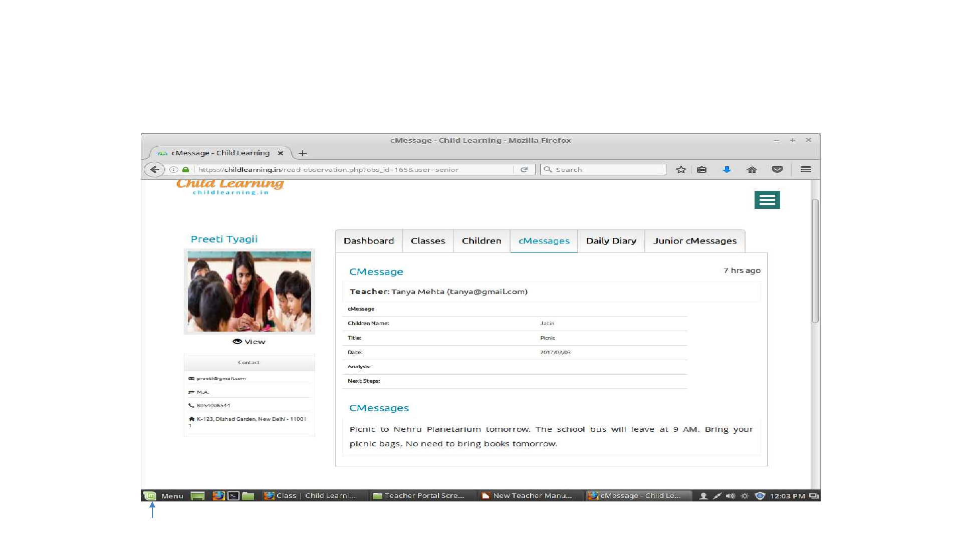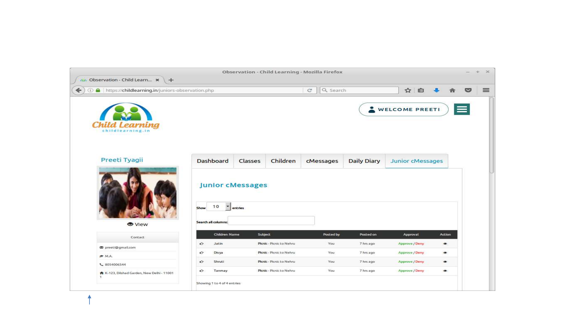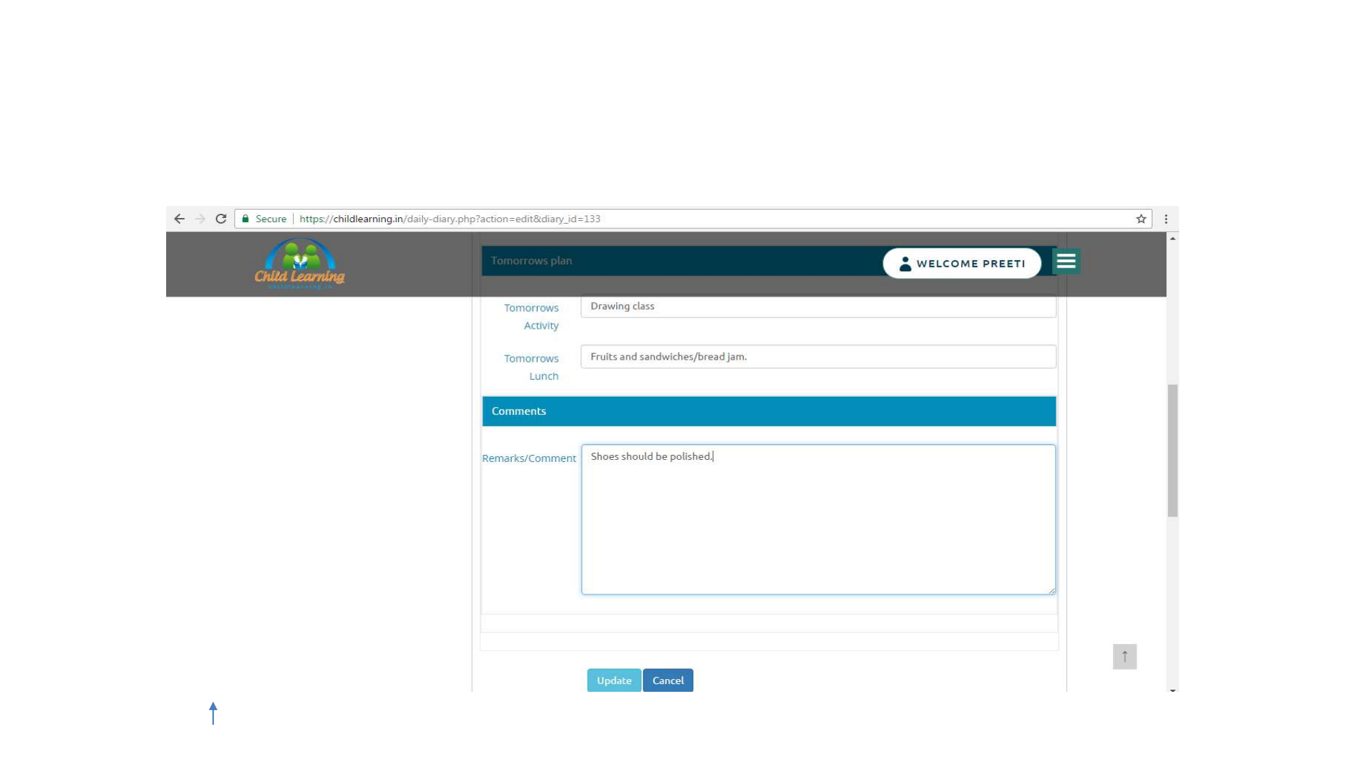 a child, adding a daily dairy for a child. Teacher can be senior or junior.