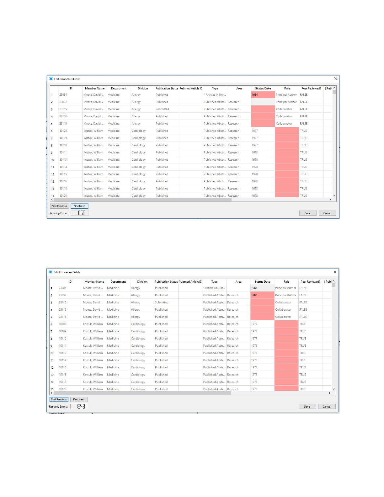 entered they can click “Find Previous” and they will be taken back to the previous error (again,