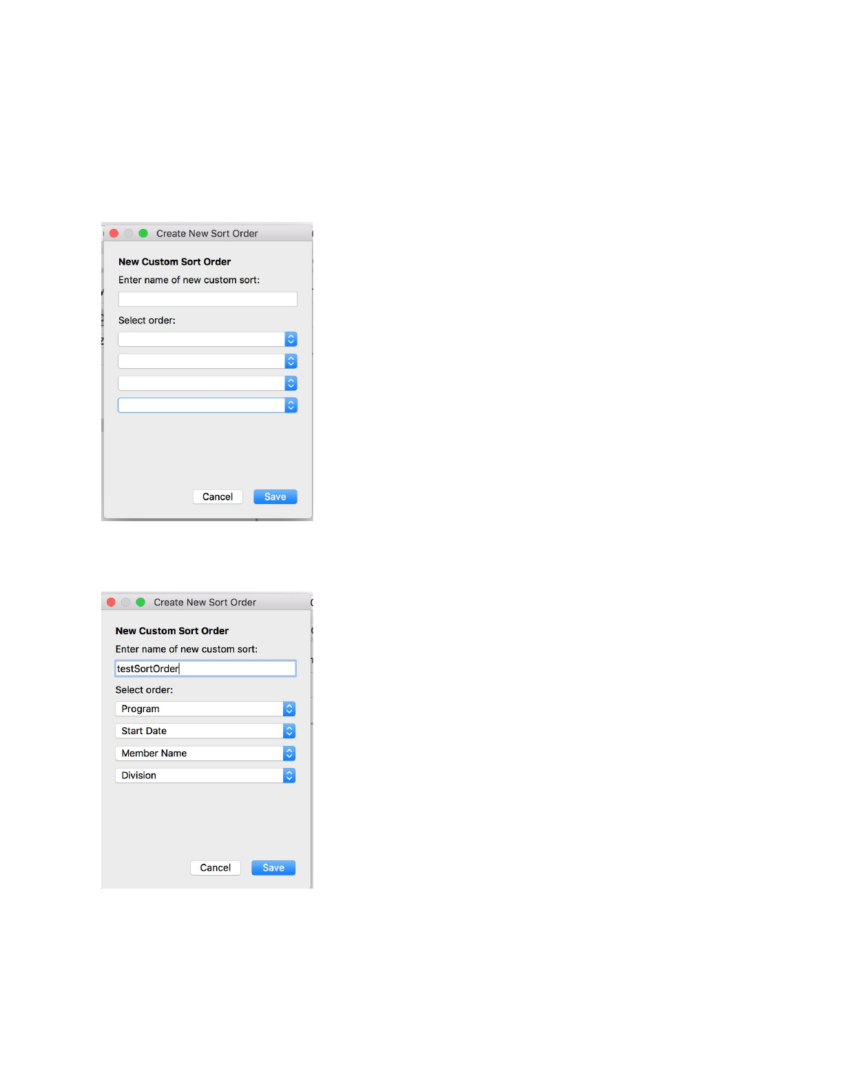 Enter name for new custom sort order and select the order in the dropdown list, and click save