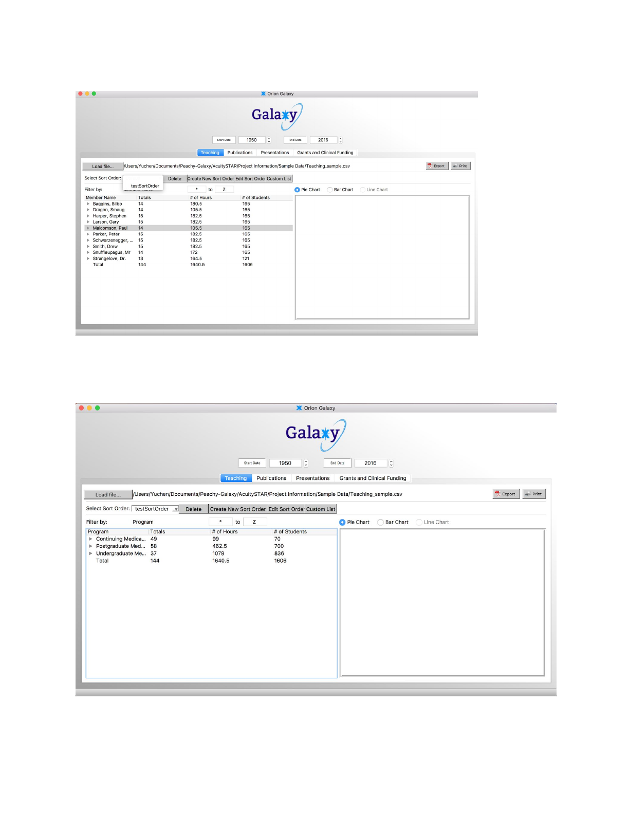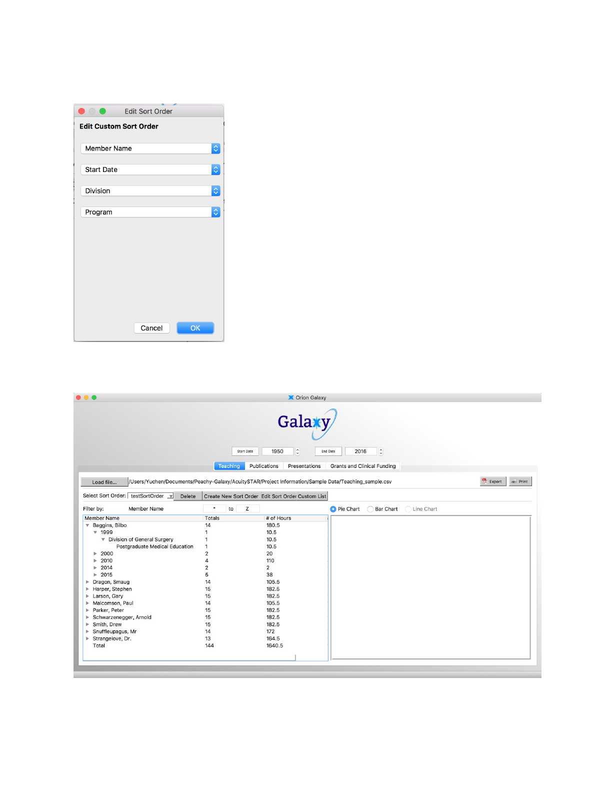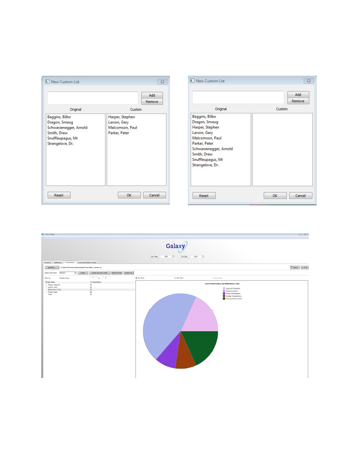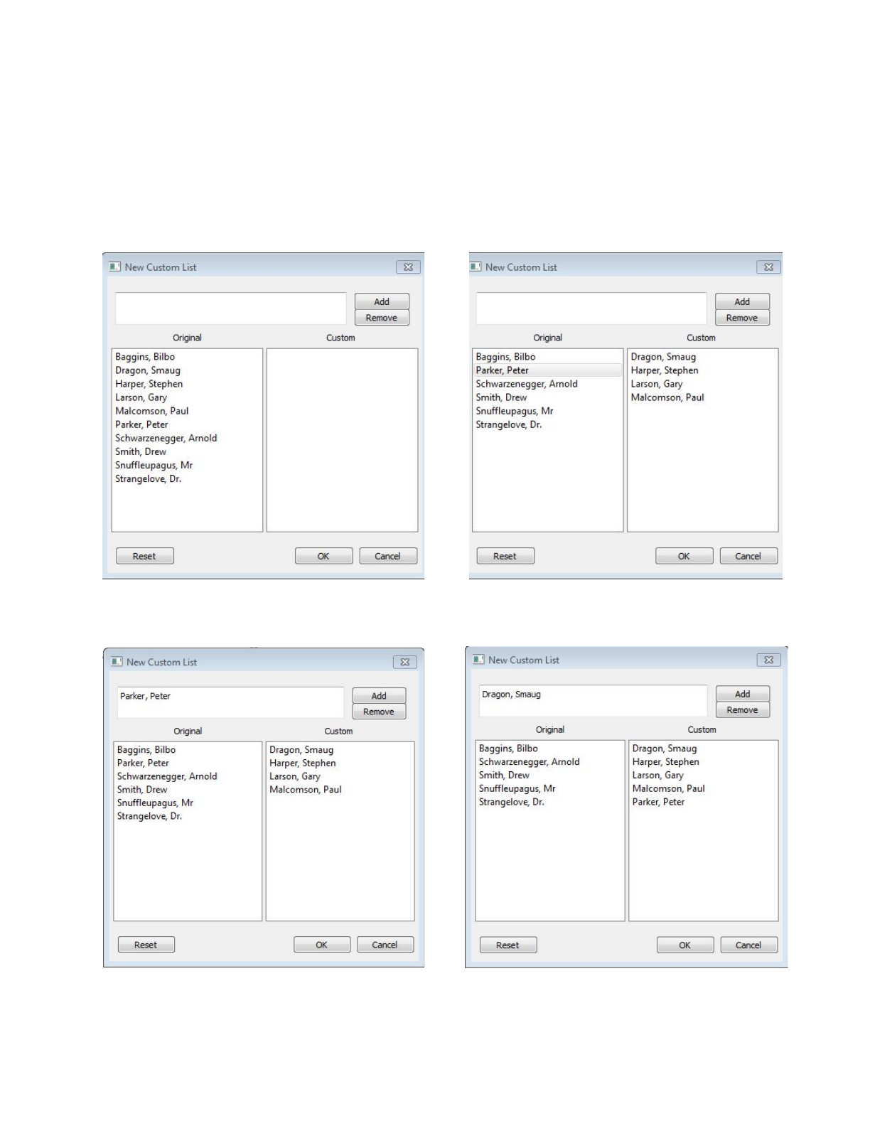 As an example, a list of the four names in the “Custom” window will be used. If the user would