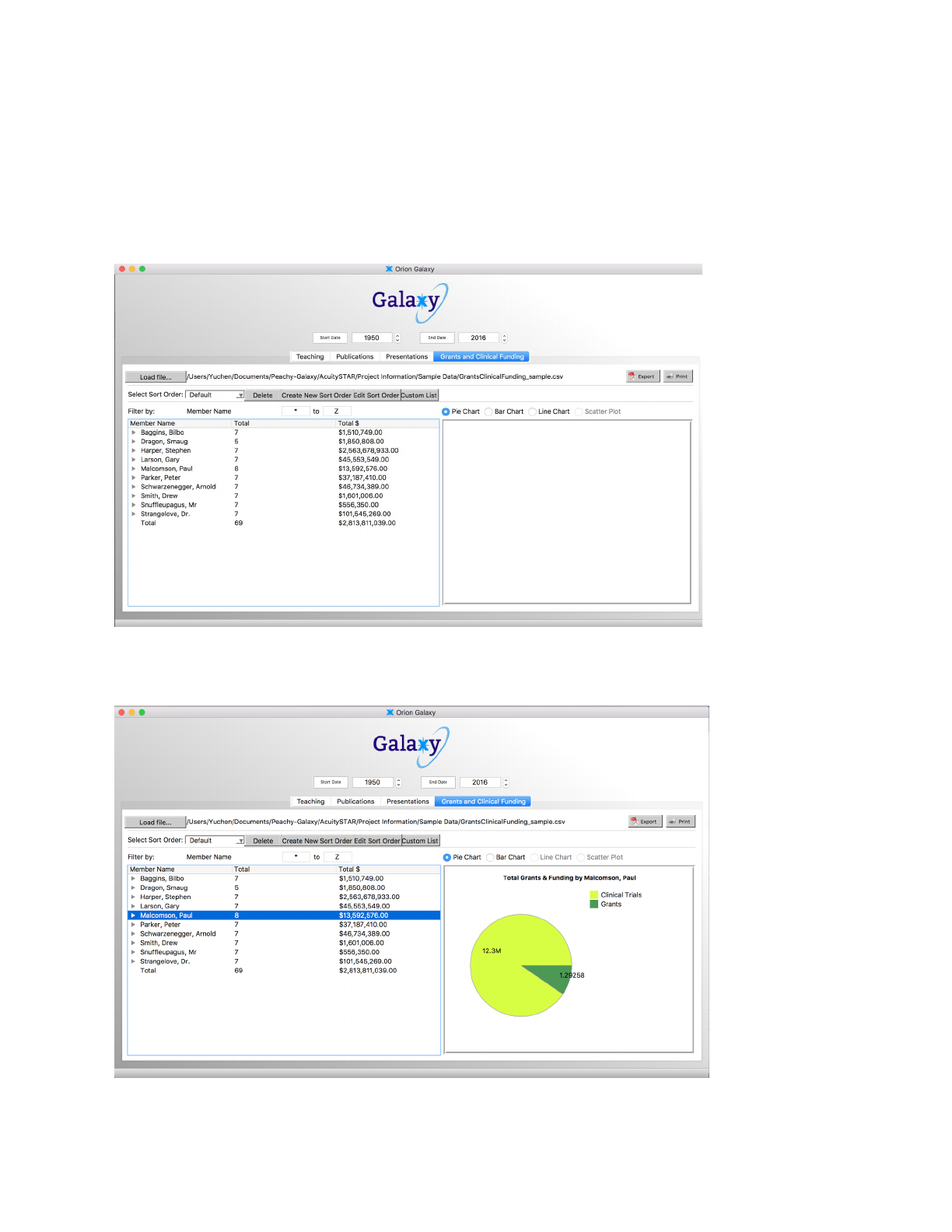 Select a Member in the left side window, the pie graph will show up.