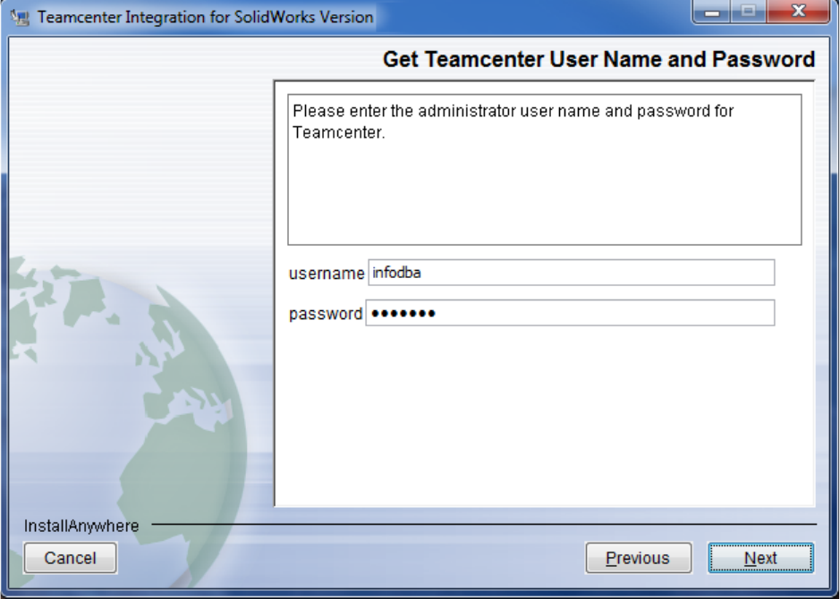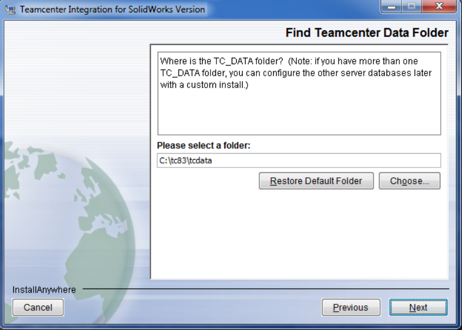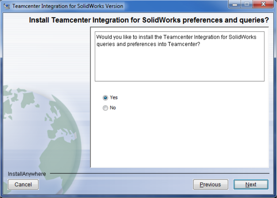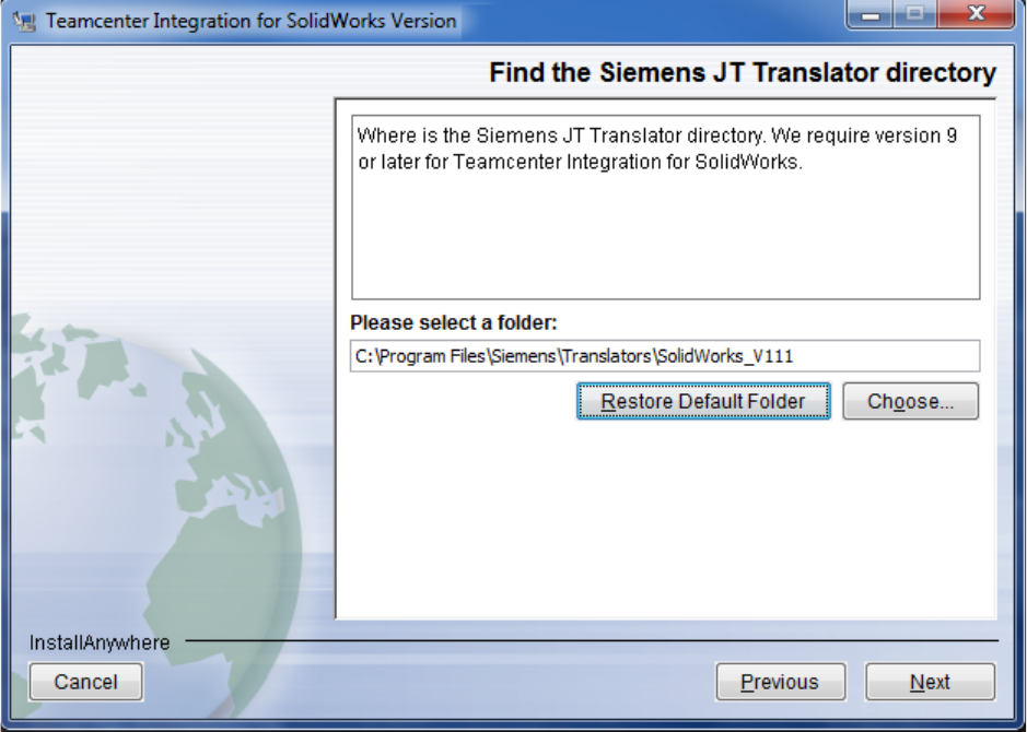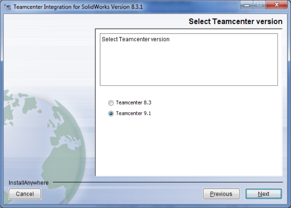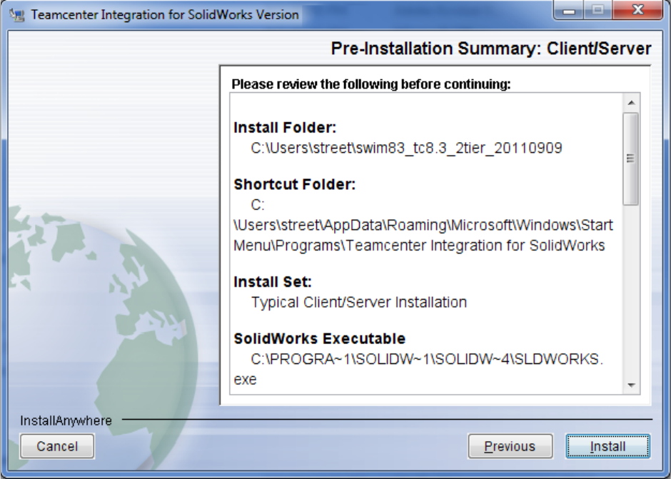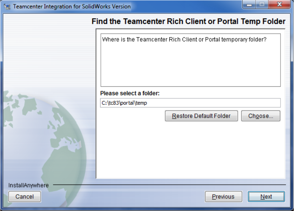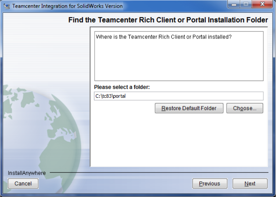 • If you receive the message, “Installation of the Teamcenter Integration for SolidWorks is