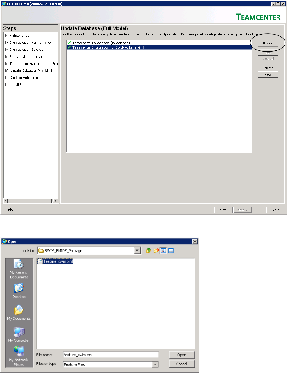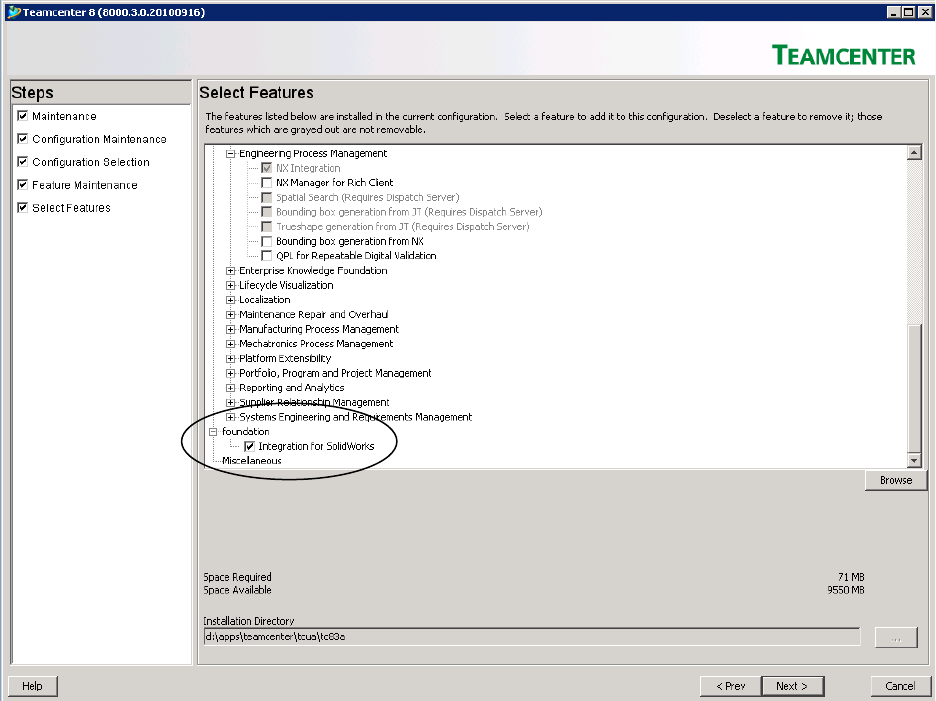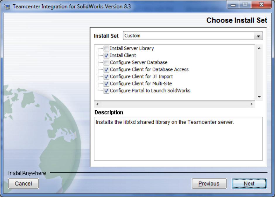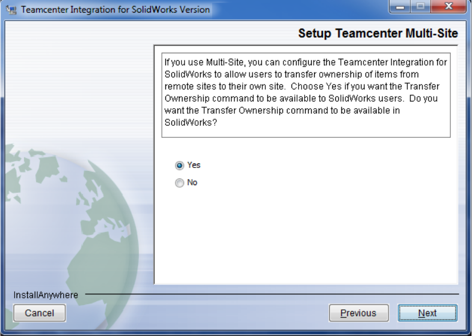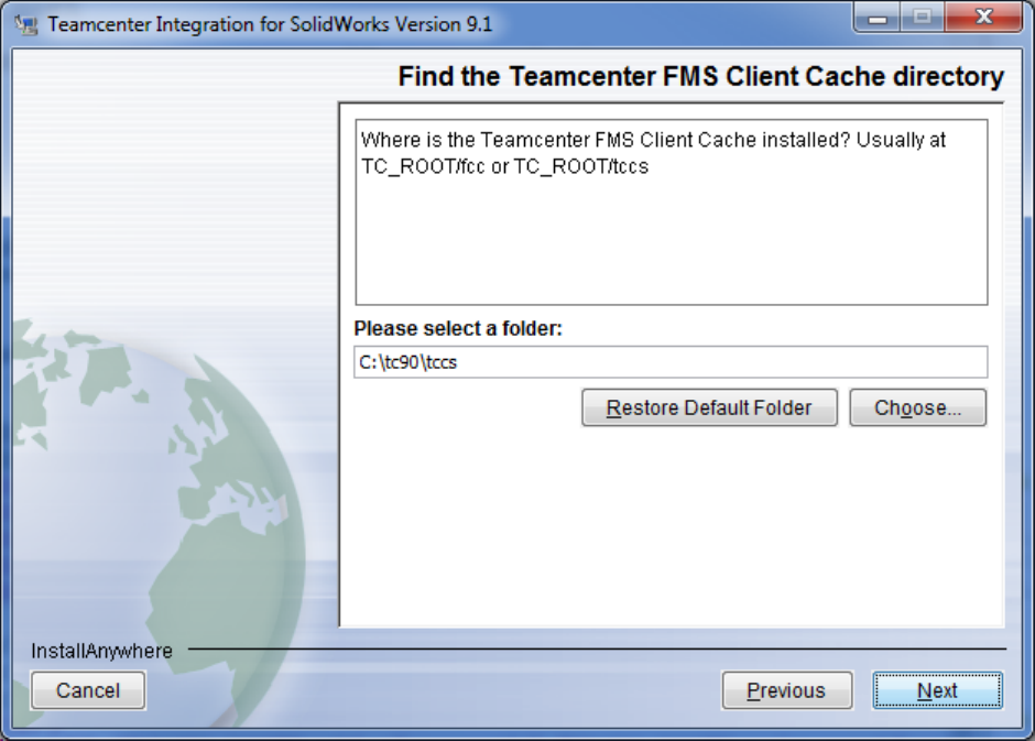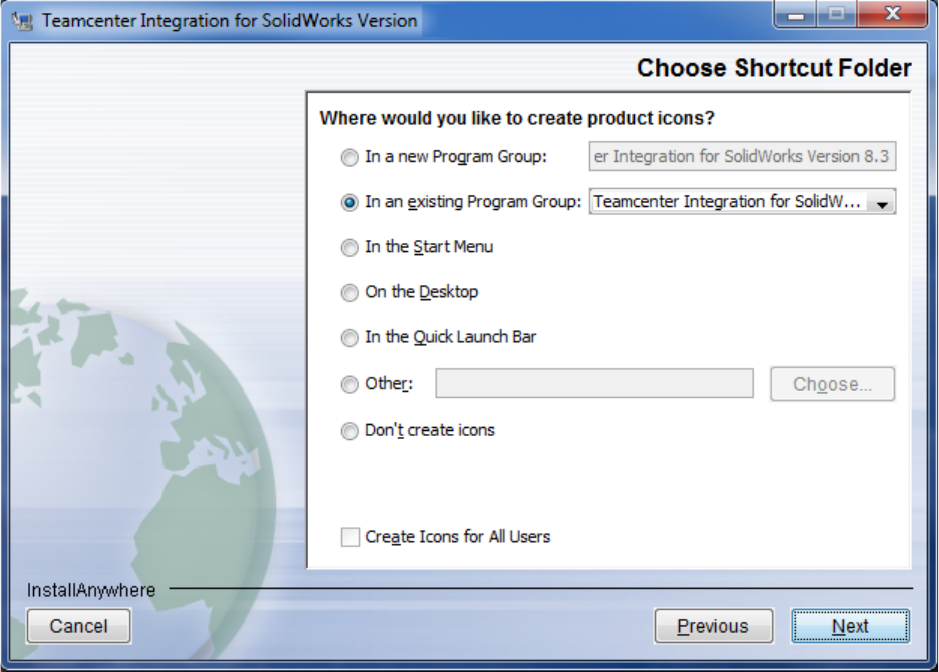 • If you receive the message, “Installation of the Teamcenter Integration for SolidWorks is