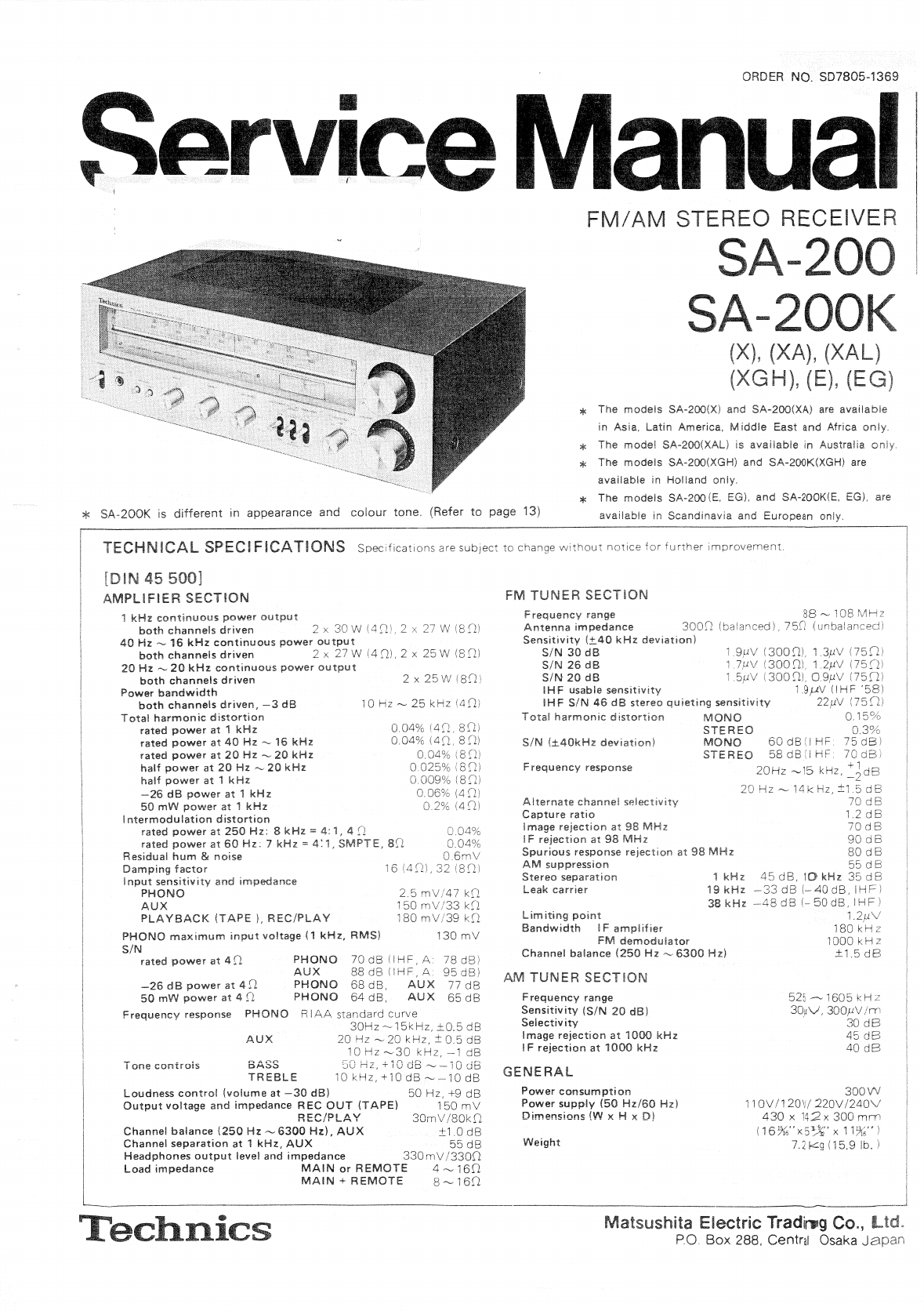 User Manual: Technics-SA-200-Service-Manual