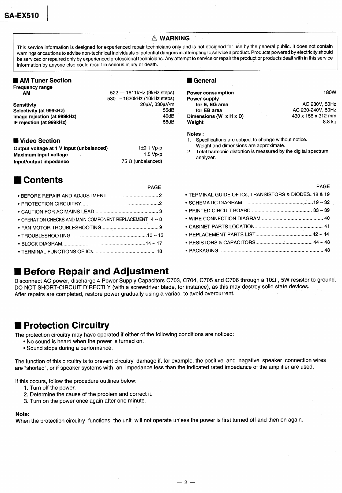 - WARNING/Contents/Before Repair and Adjustment/Protection Circuitry