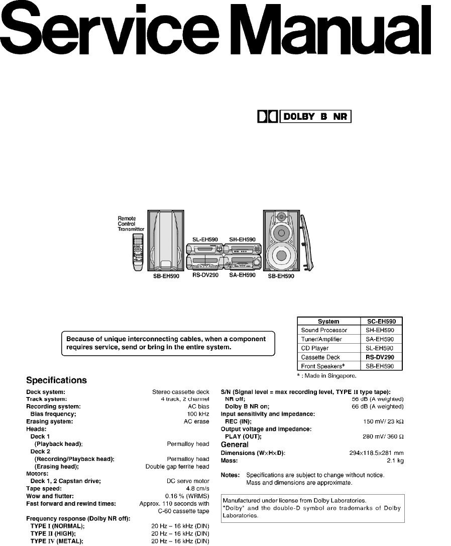 Refer to the service manual for Model No. SA-EH590EG, SA-EH590EP (Order No. AD0302008C8)
