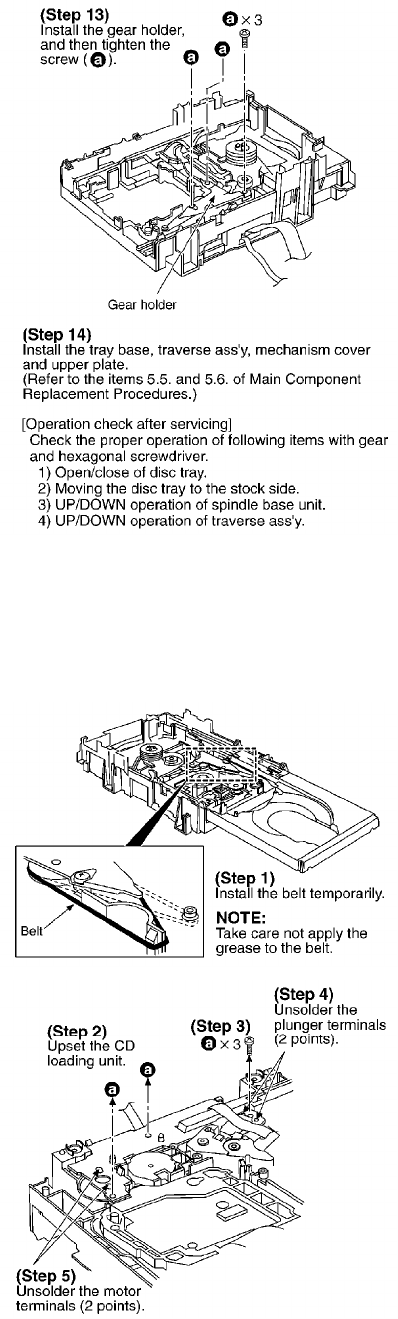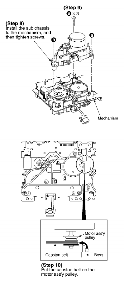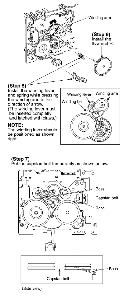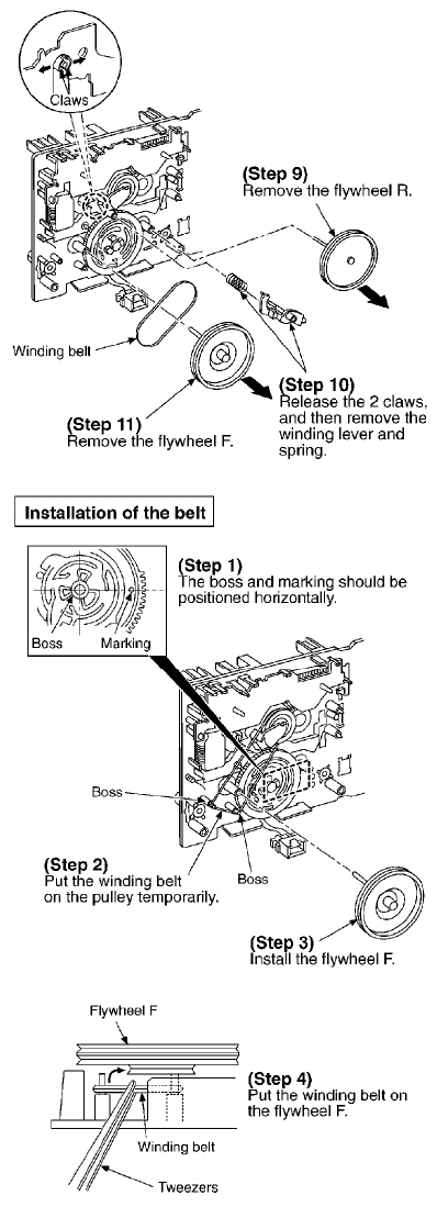 3.3. Replacement for the motor ass’y, capstan belt and winding belt