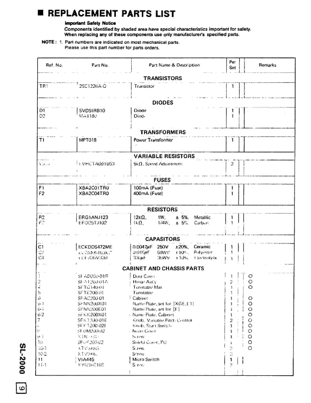 User Manual: Technics-SL-2000-Service-Manual