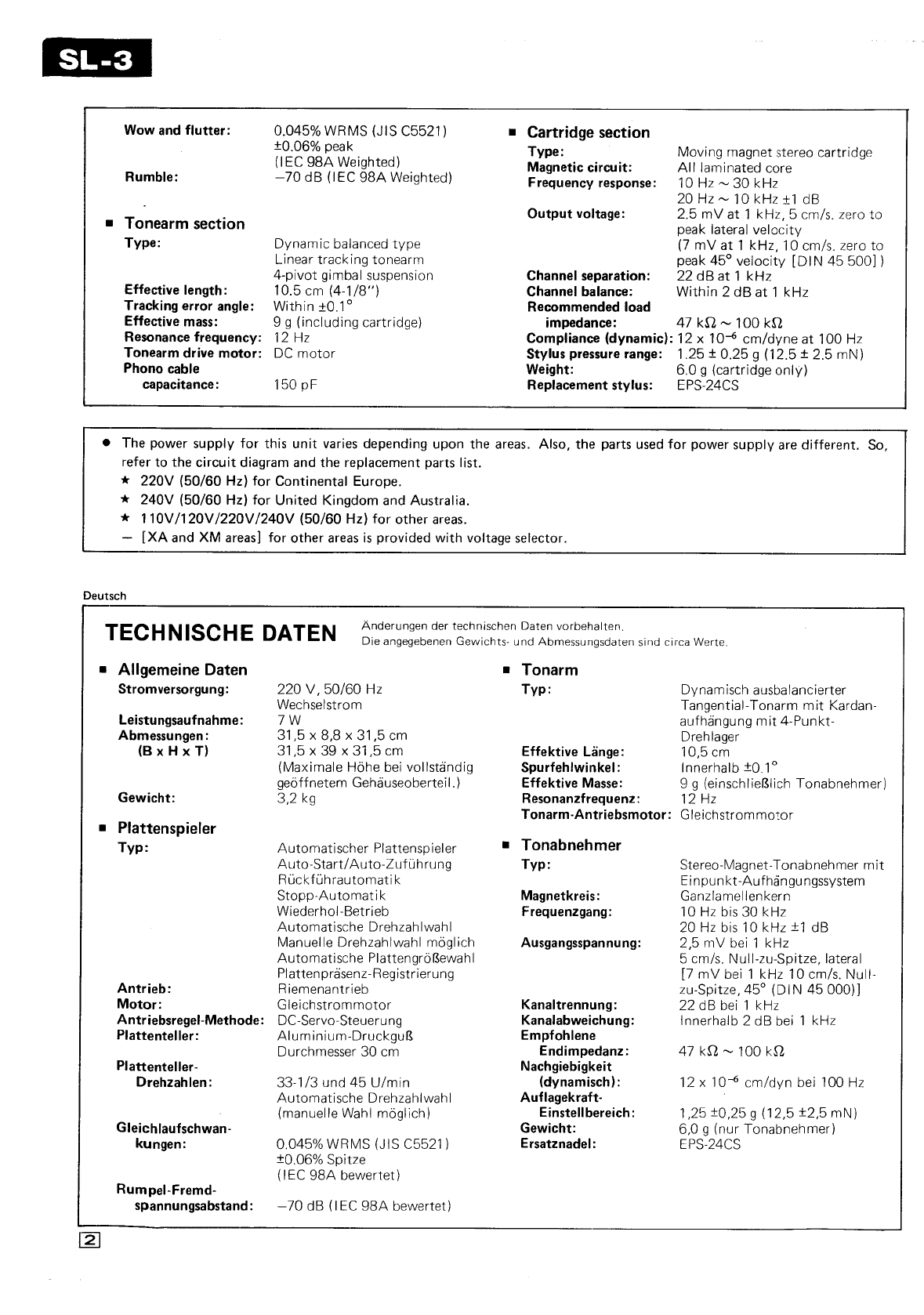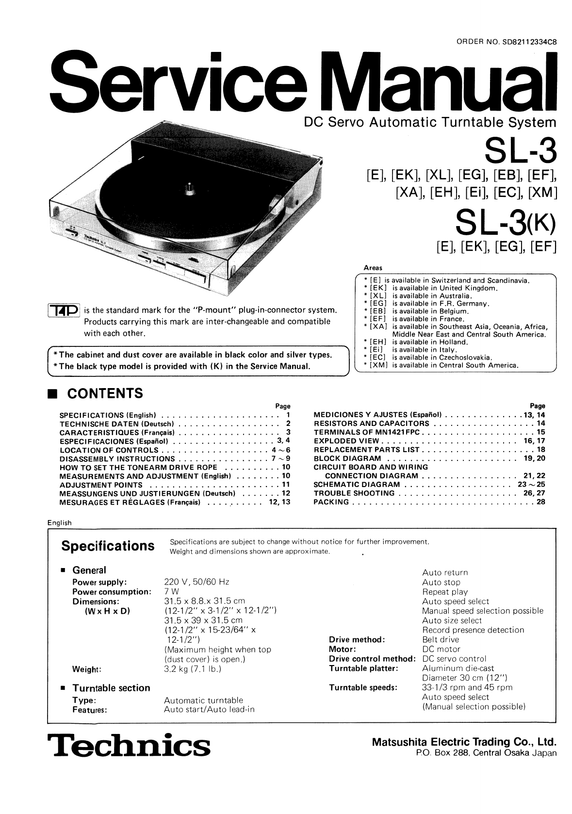 User Manual: Technics-SL-3-Service-Manual