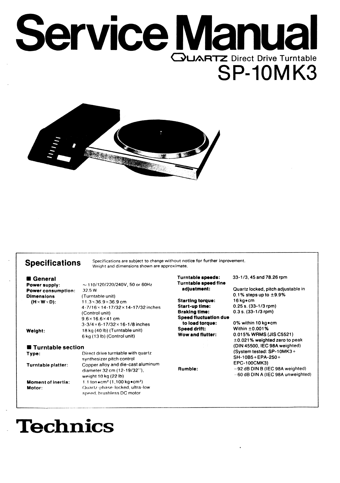 User Manual: Technics-SP-10-Mk3-Service-Manual