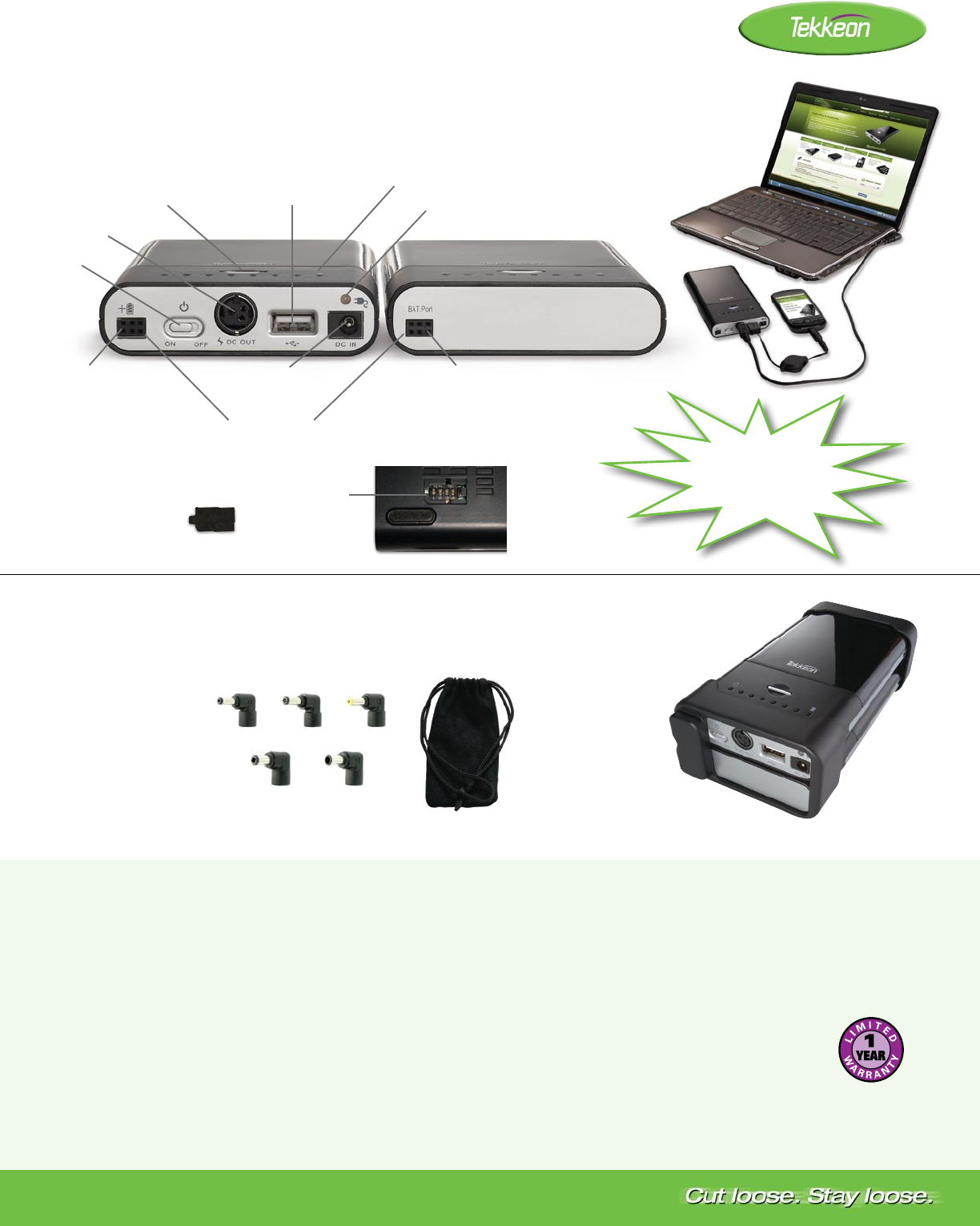 DC jacks. Additional adapter tips, as well as the extended batteries,