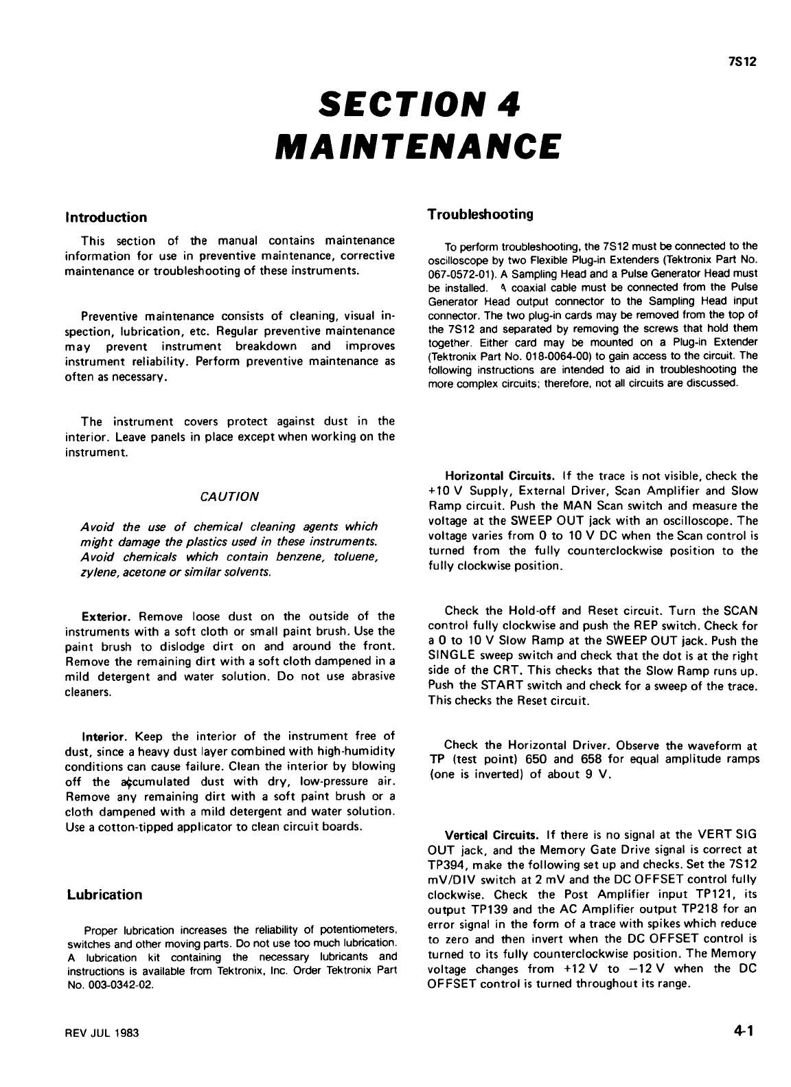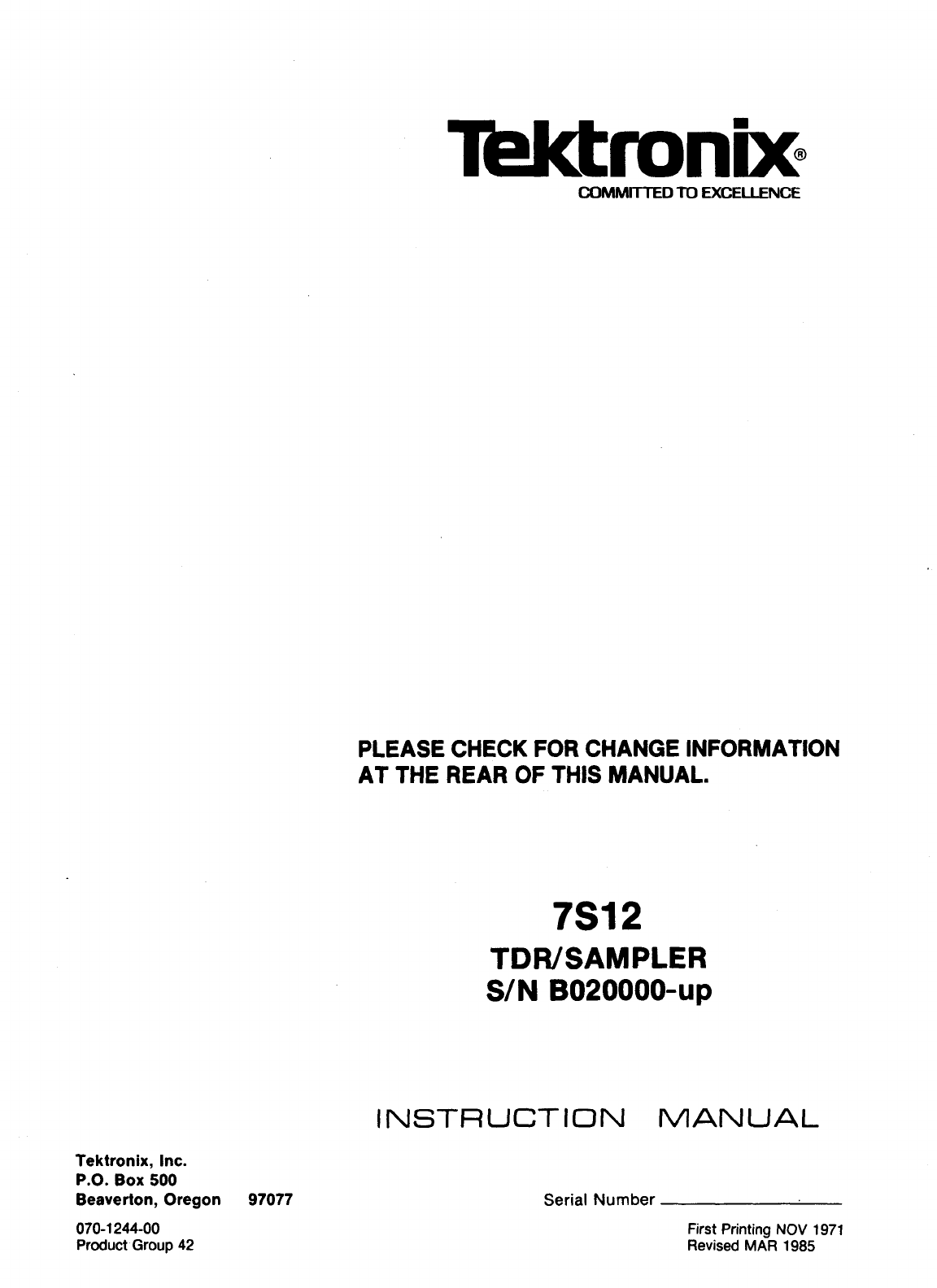 User Manual: Tektronix-7S12-TDR-Sampler-Oscilloscope-Plugin-1985-WW Tektronix