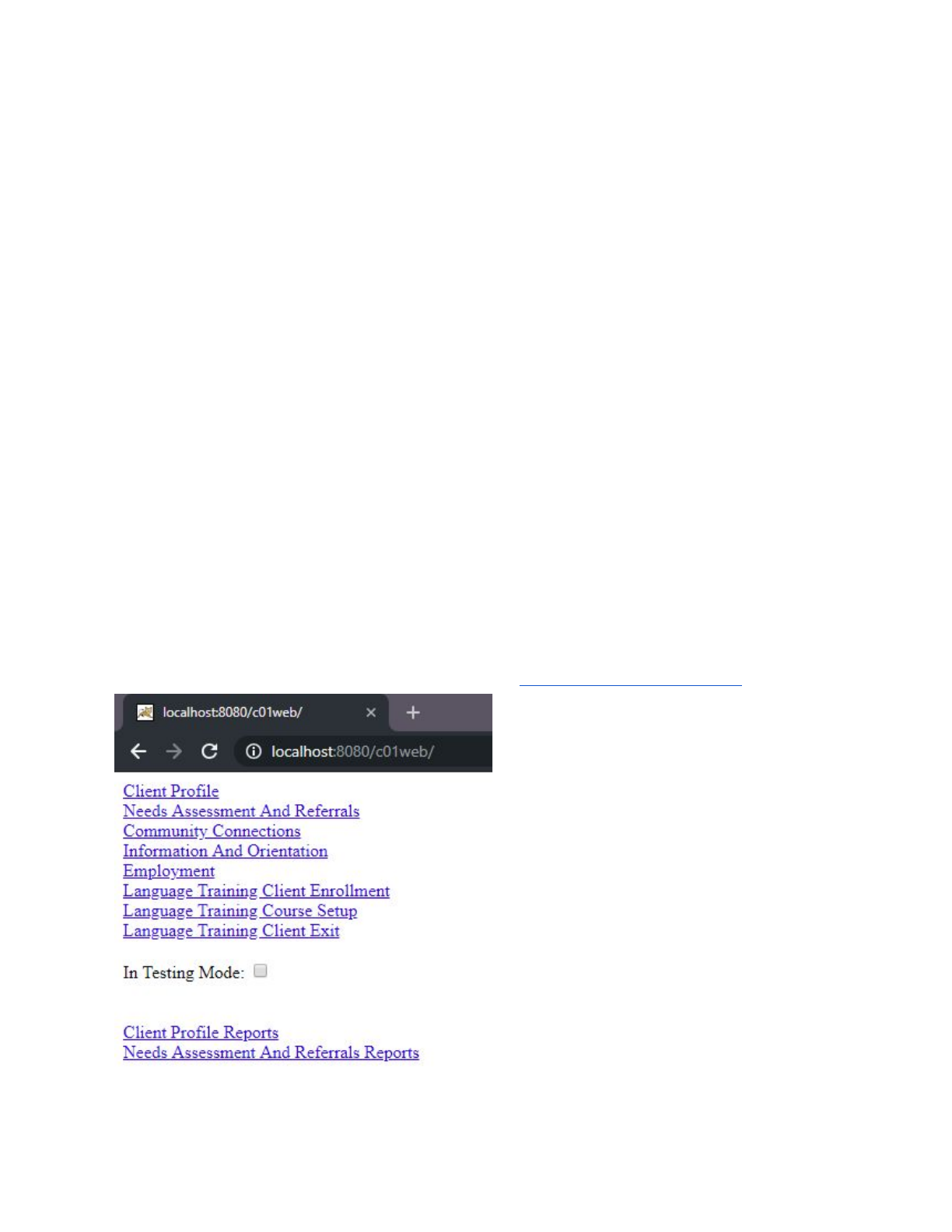 The tester should start on the main page of the project http://localhost:8080/c01web/