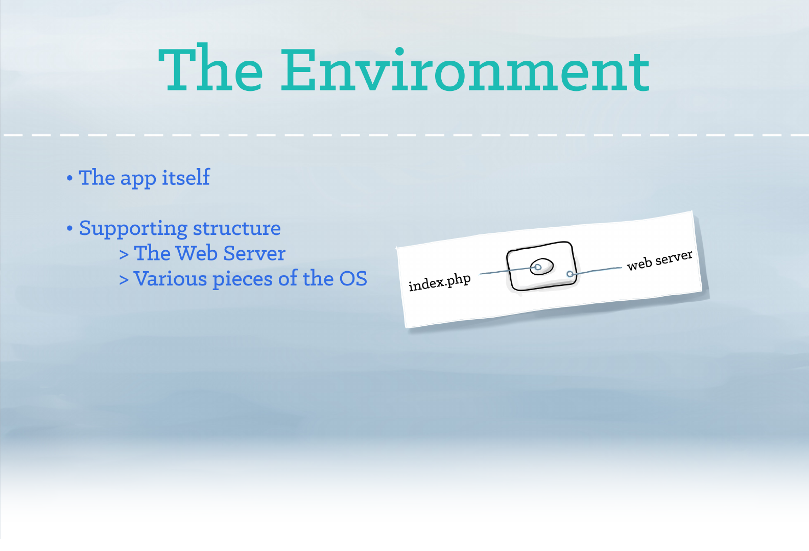 An app has an environment that it relies upon to run. For a PHP app, that environment might include a web