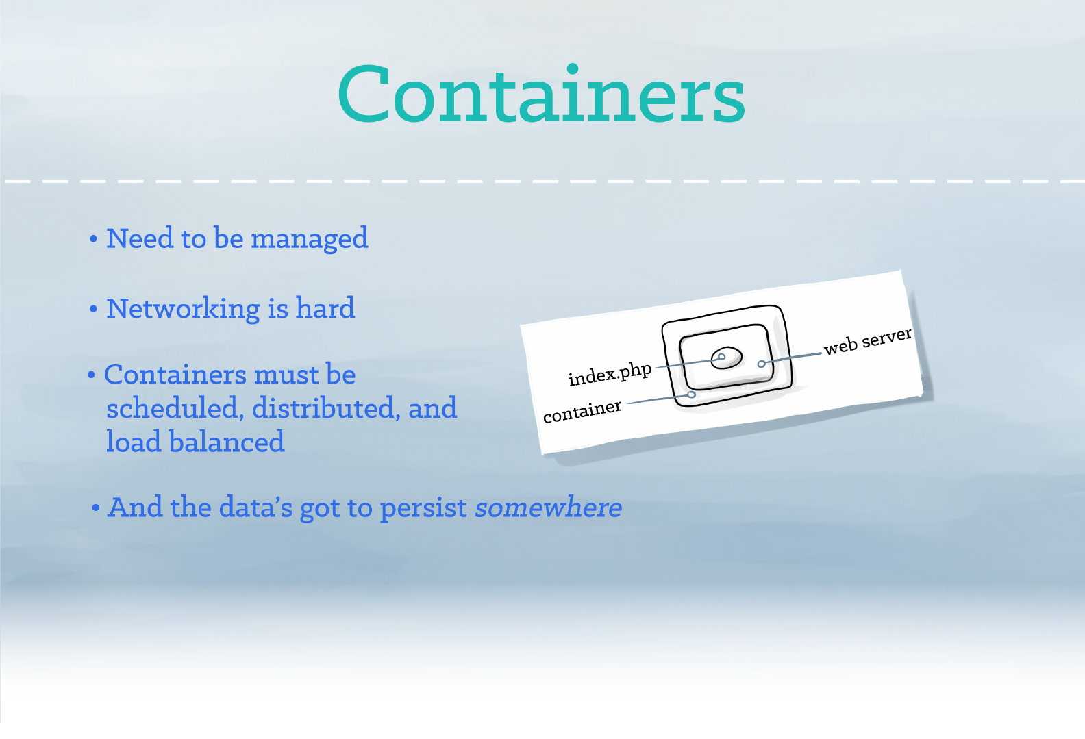 She lived on a hosting provider and she shared her environment with scary other apps she didn’t know, and didn’t