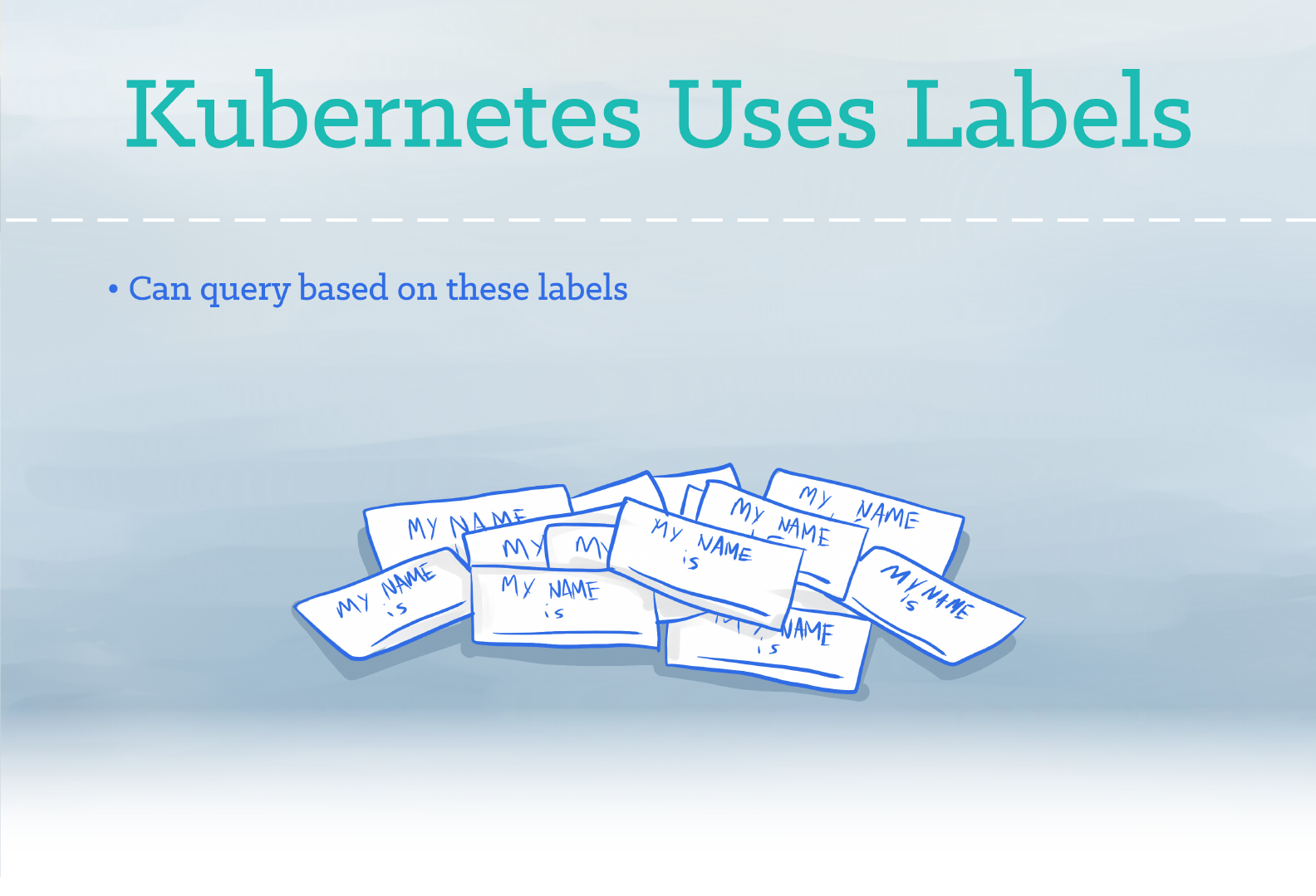 Kubernetes uses labels as “nametags” to identify things. Labels are open-ended. You can use them to indicate