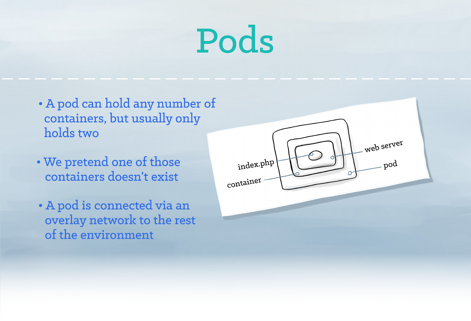 a few containers are tightly coupled, you may opt to run more than one container inside of the same Pod.