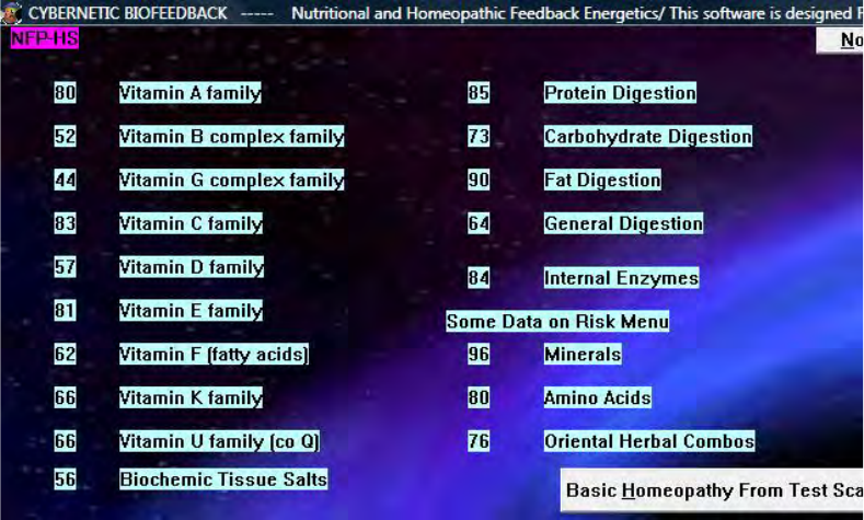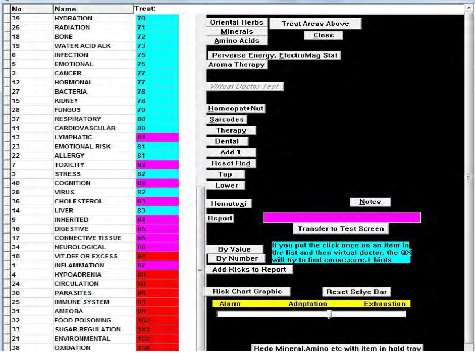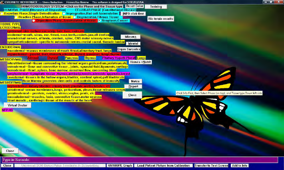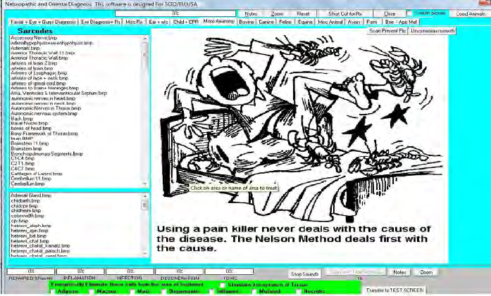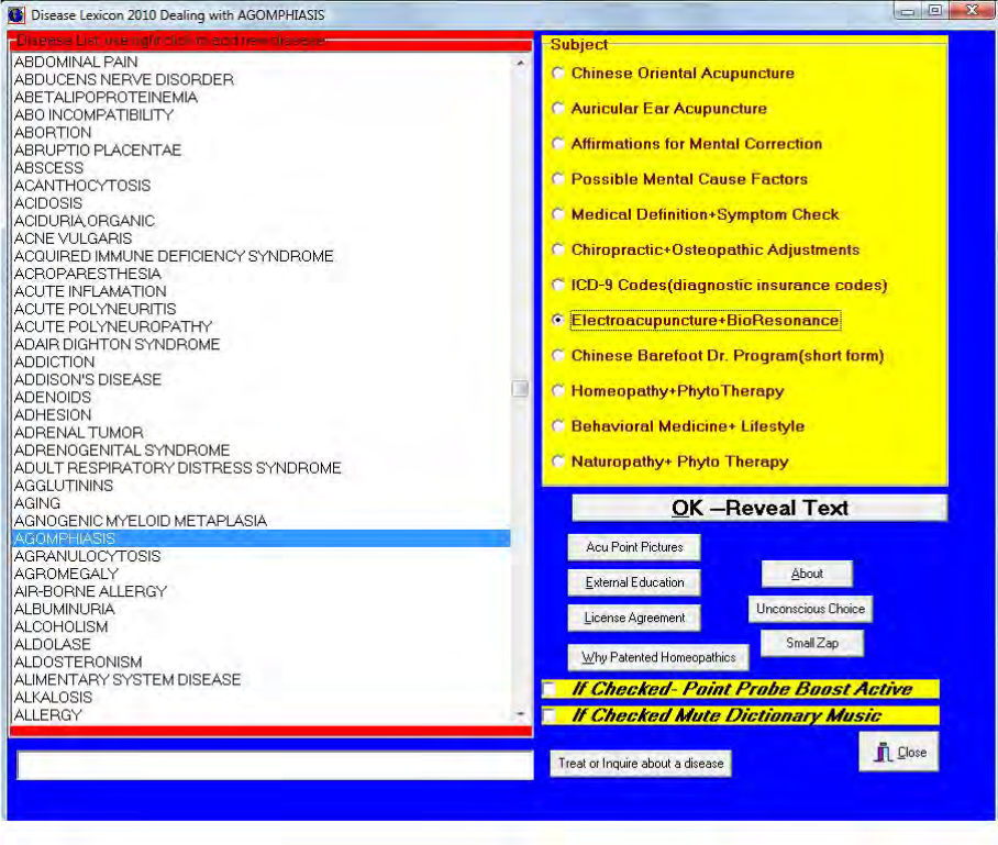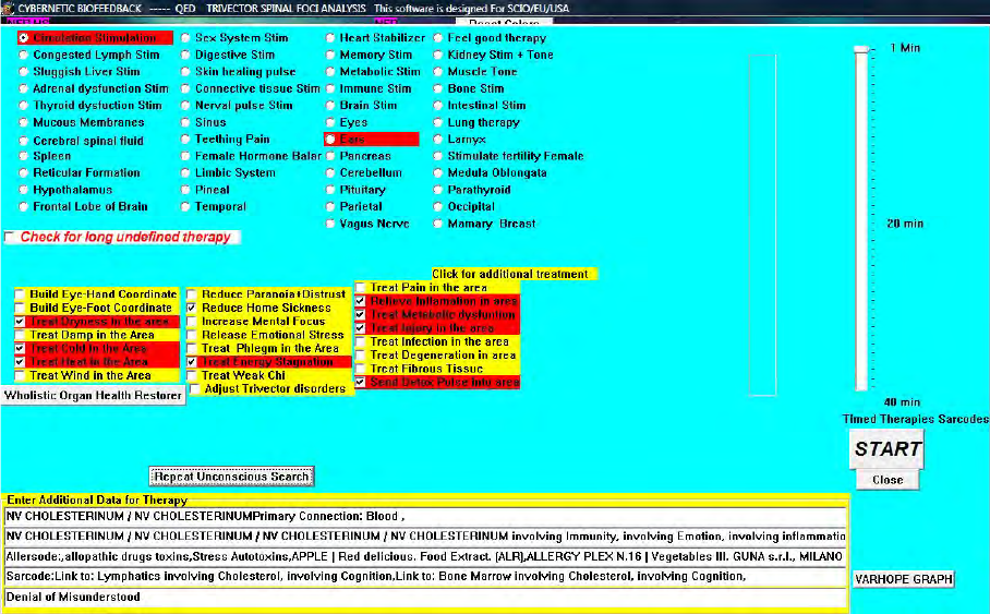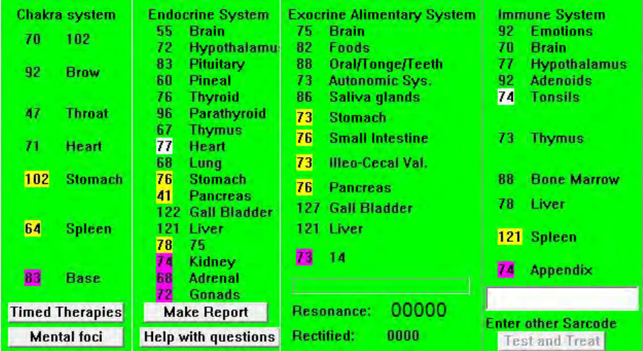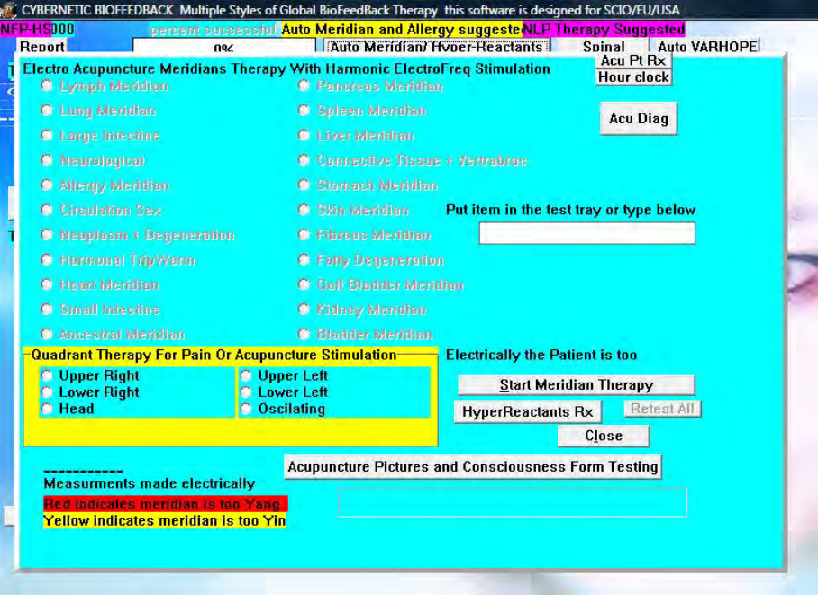 Choose an area from the yellow box (Electroacupuncture and Bioresonance most used)