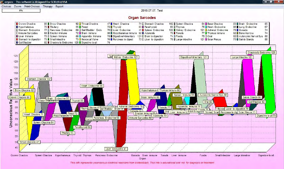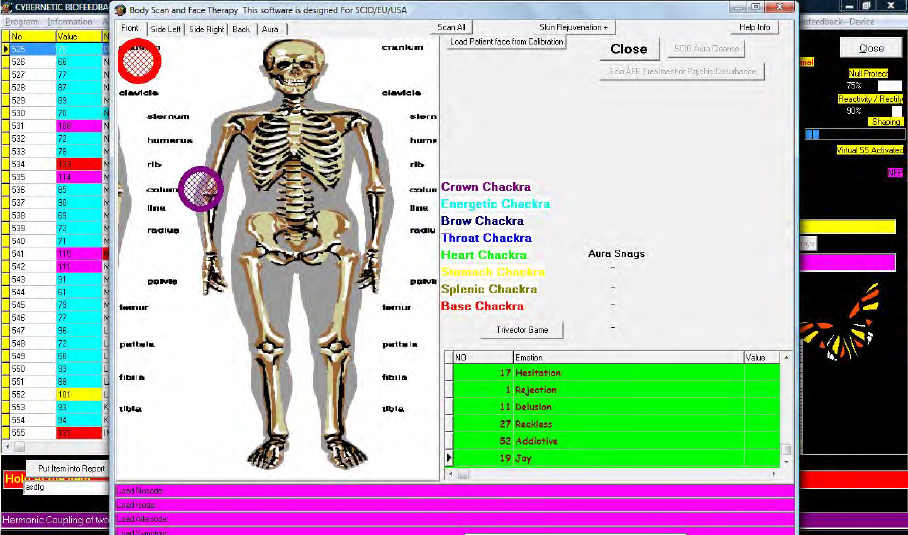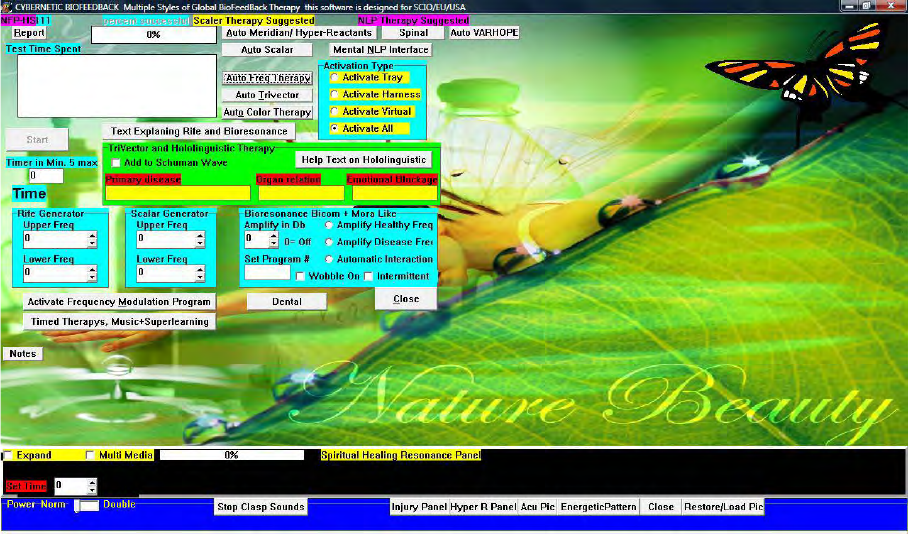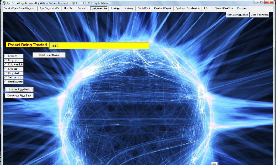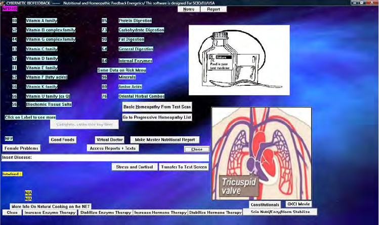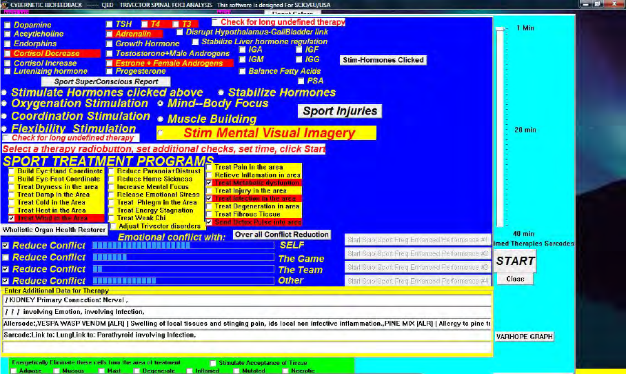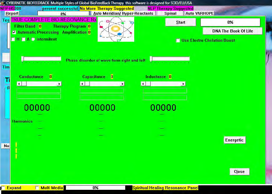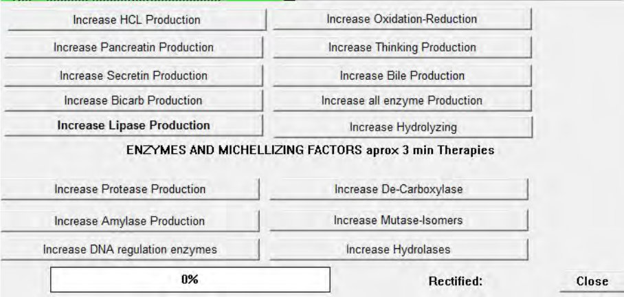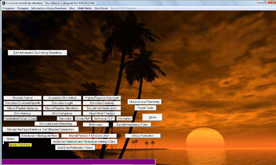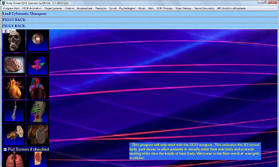 Select therapies from the following menus: Program Start, Organ Systems, Chakras, Acupuncture,