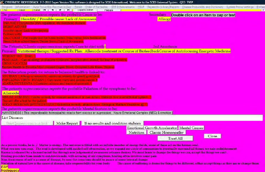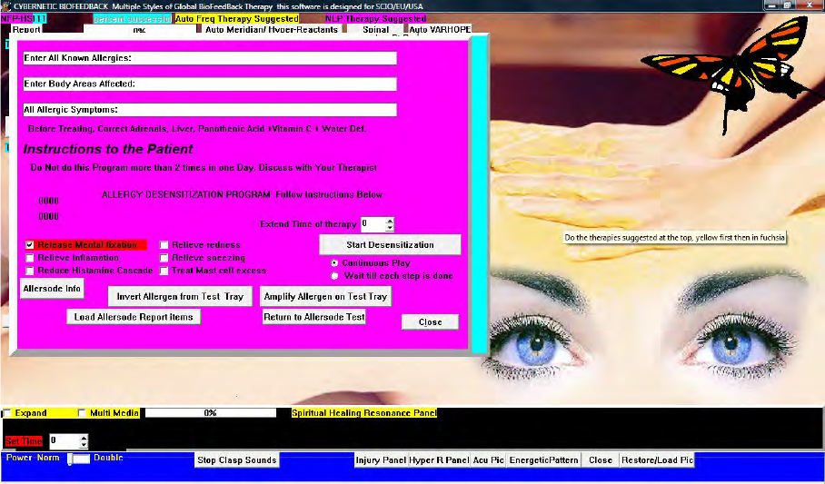 Click Patient/Client Superconscious Reduction Panel from the drop down menu