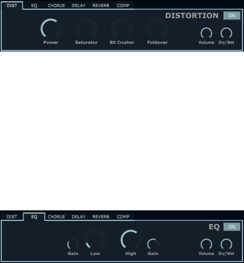 ToneZ provides 6 Effects: Distortion, EQ, Chorus, Delay, Reverb and a Compressor