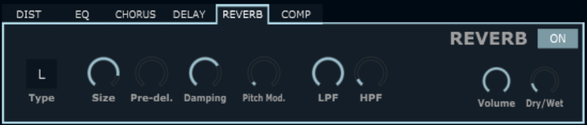 Volume: Controls the volume of the reverberated signal.