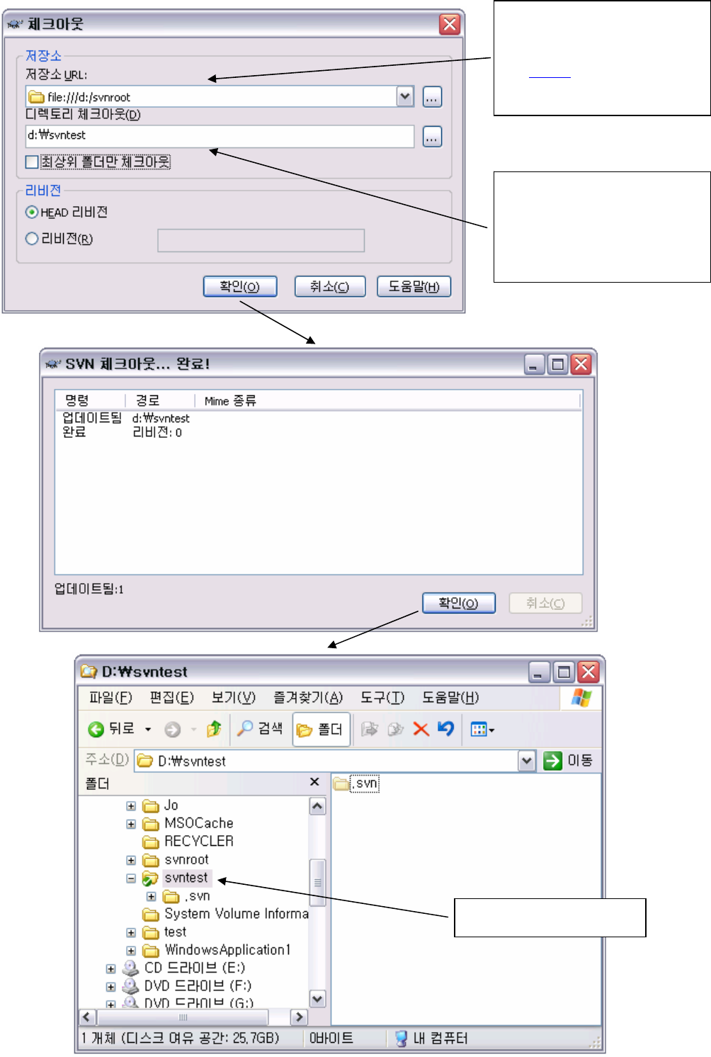 3.2 작업용 복사본 가져오기 (SVN 체크아웃)