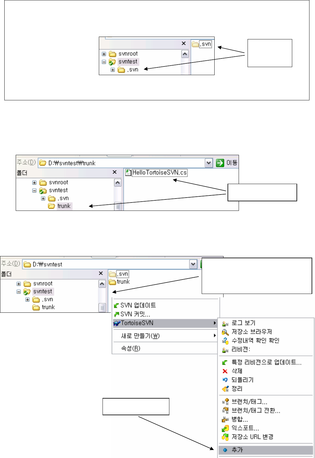 TortoiseSVN은 오직 윈도우 탐색기에서 마우스 오른쪽 버튼을 클릭하여 나오는 메뉴를 통해서만 사용할 수