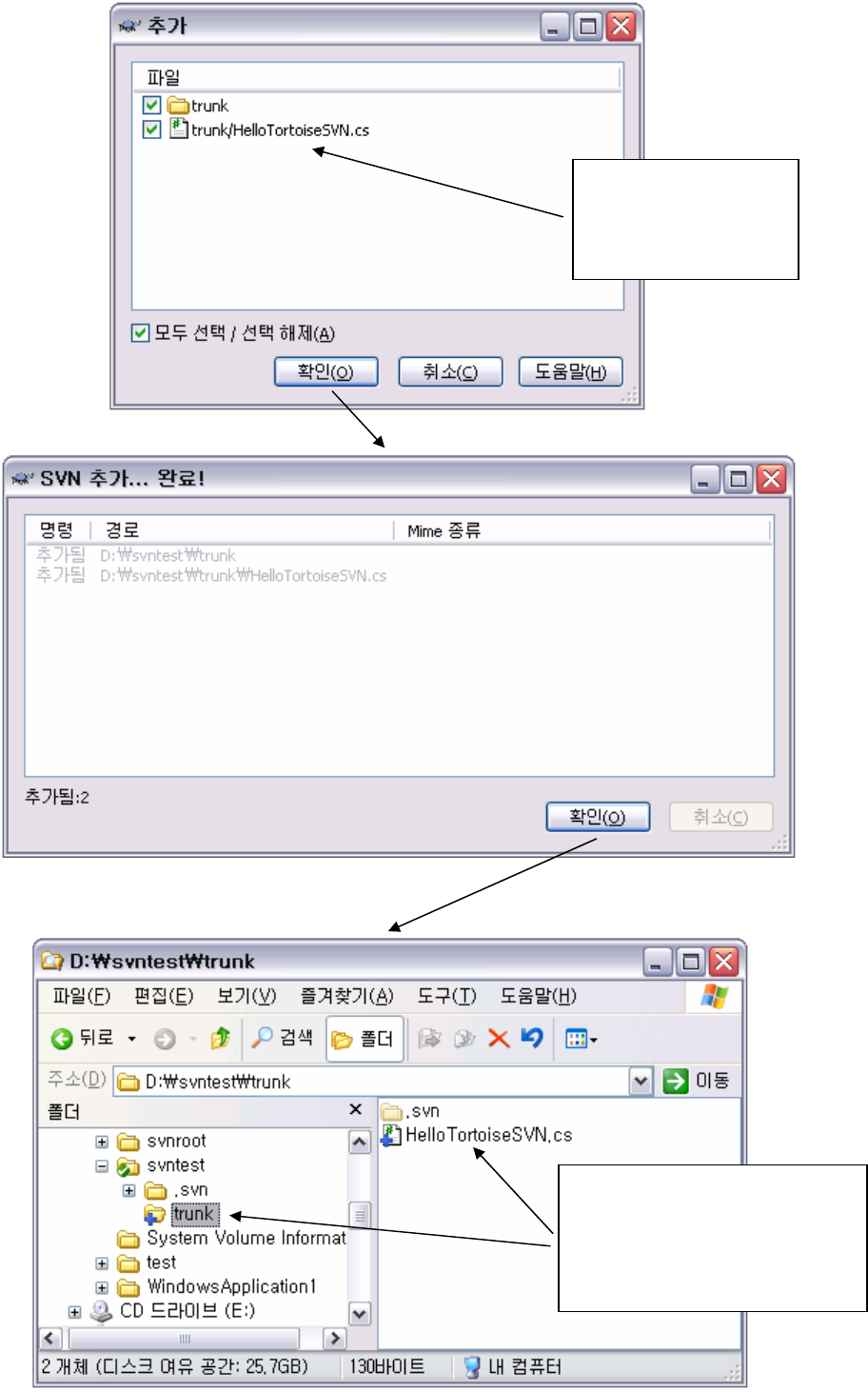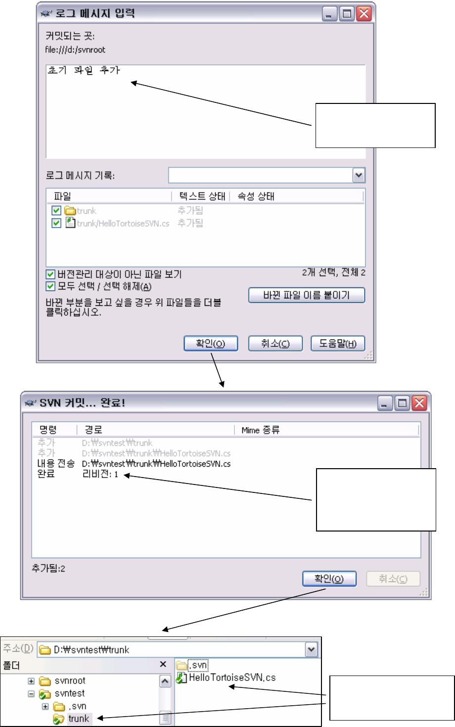 다. 이와 비슷하게 Subversion은 사용자가 저장소의 주요 작업 폴더 및 파일들을 저장소에 저장할 때