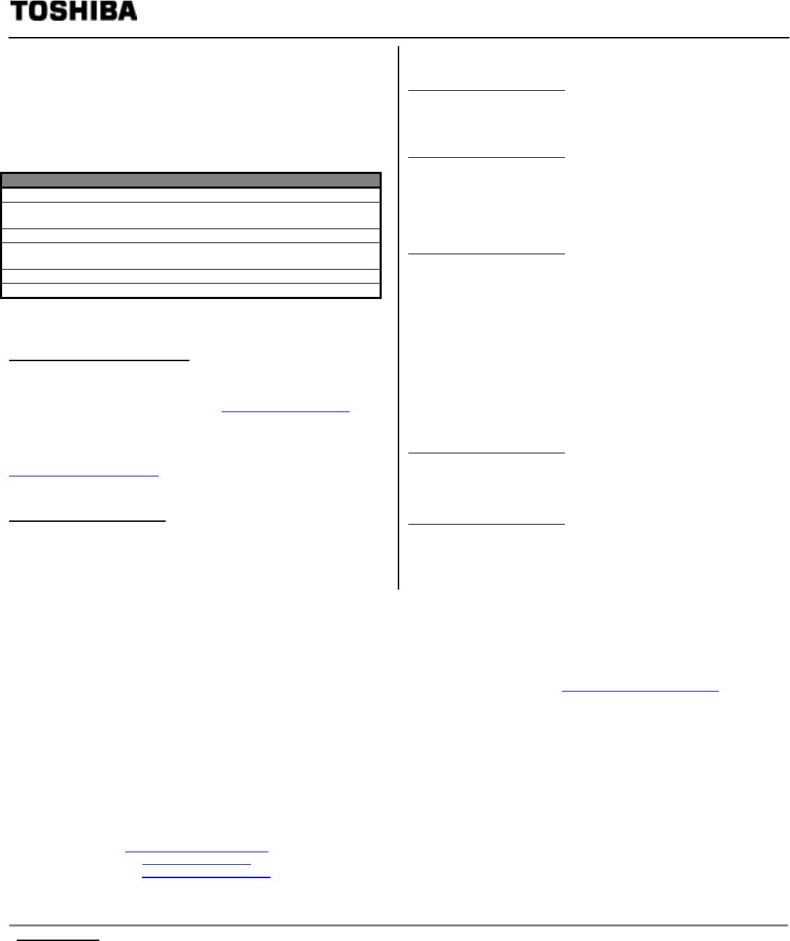 ToshibaDirect website: http://www.toshibadirect.com