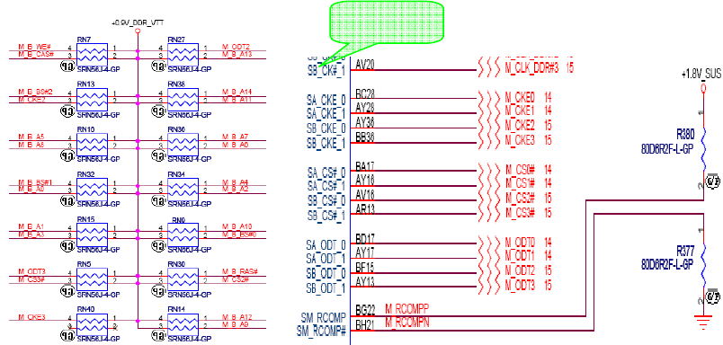 用以連接北橋到 DIMM Slot 的記憶體匯流排(Channel A & Channel B) ,其時脈為 800/1066MHz,傳