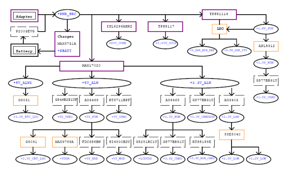 A. 当用电源开机后自动断电,可先量一下+3.3V_ALW/+5V_ALW致+1.05V_RUNP电压之间的各电压是否