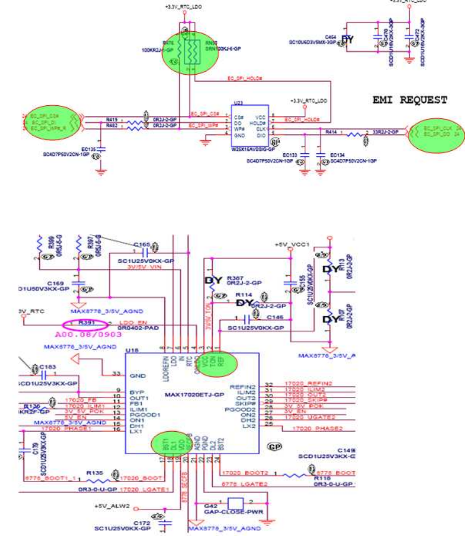 到KBC和U18使M/B无法开机.在开机后U8通过Q18和Q1来侦测M/B上的温度,并通过U8.22.23Pin SMBUS和KBC