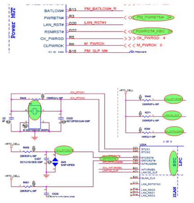 D1 轉換出“RSMRST#”到南橋,當這些信號都具備後按 PWRBTN 鍵瞬間拉低“PWRBTN”信號通過一個