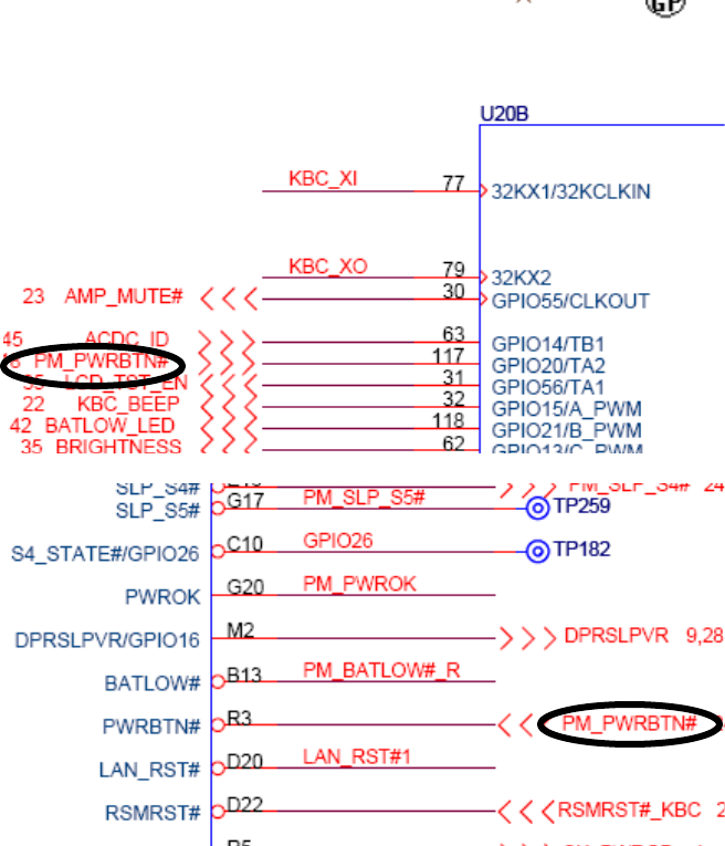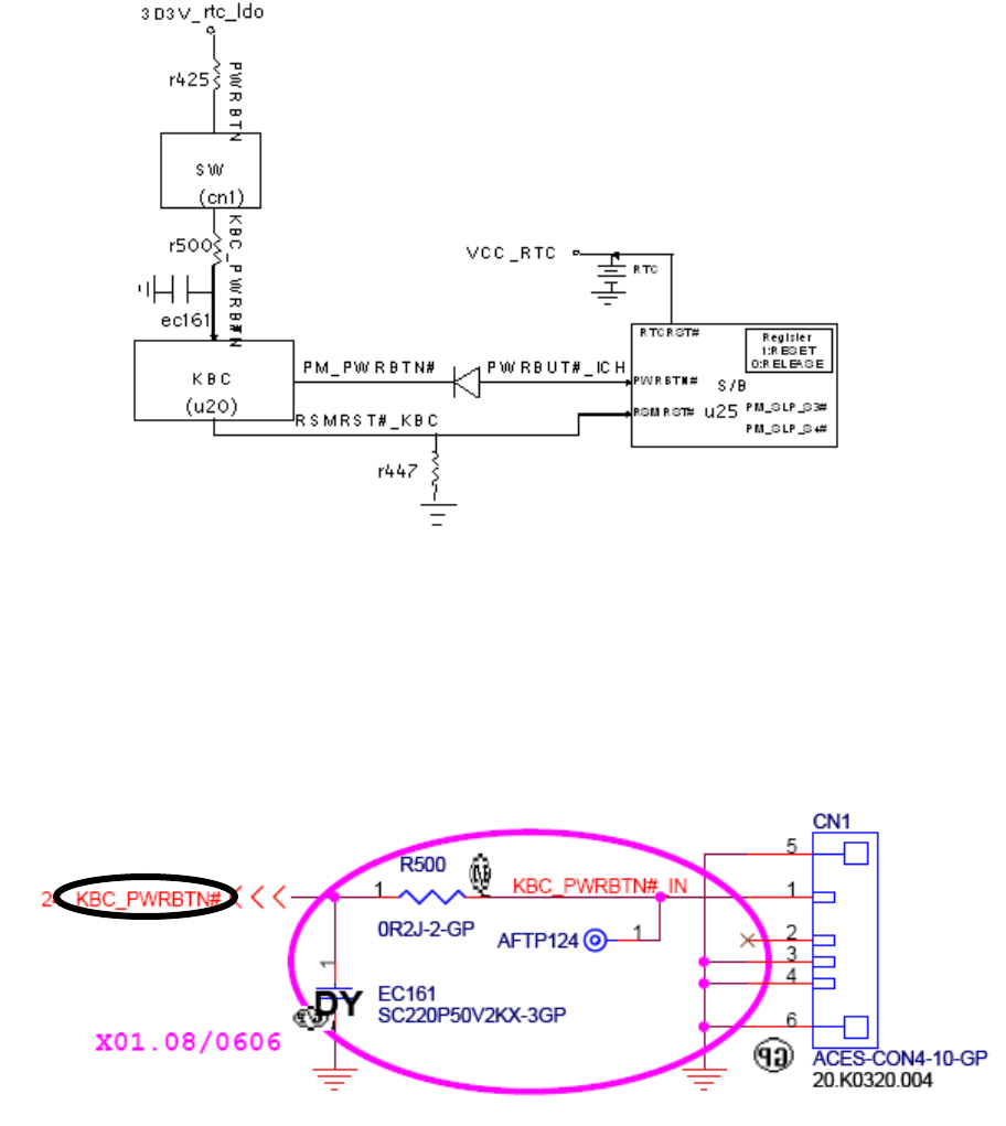 電阻 R轉換出“KBC_PWRBTN#”,該信號發到 KBC 後,KBC 會發出“PM_PWRBTN#”信號通過二