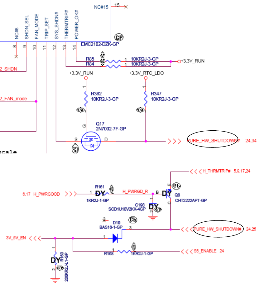 PURE_HW_SHUTDOWN#拉低,Q10导通ECRST#拉低,同时D10也导通3V_5V_EN拉低.这两路信号同时送