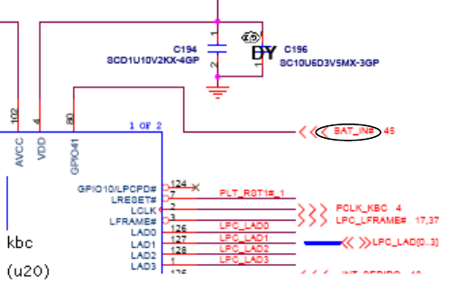 电池开机后自动断电时重点量一下BATT_SENSE, BAT_IN#信号,这个信号是告诉KBC现在电池已经插上
