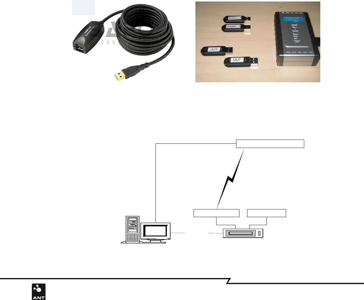 the USB extension cable, another golden unit is connected to the USB hub. This will establish an ANT master device and