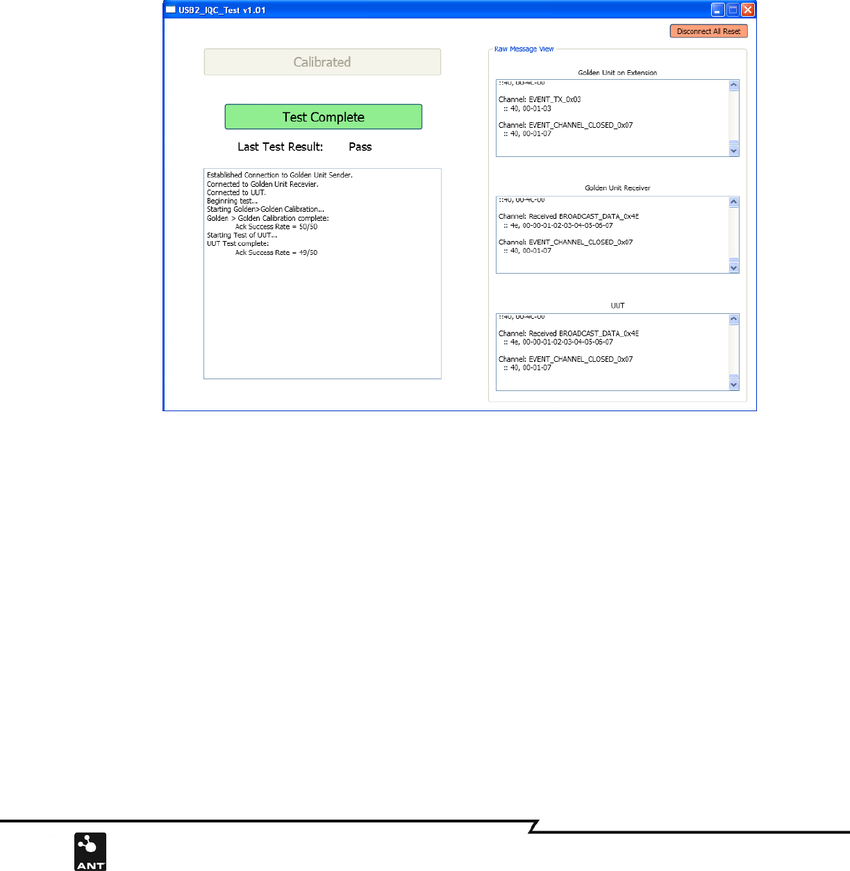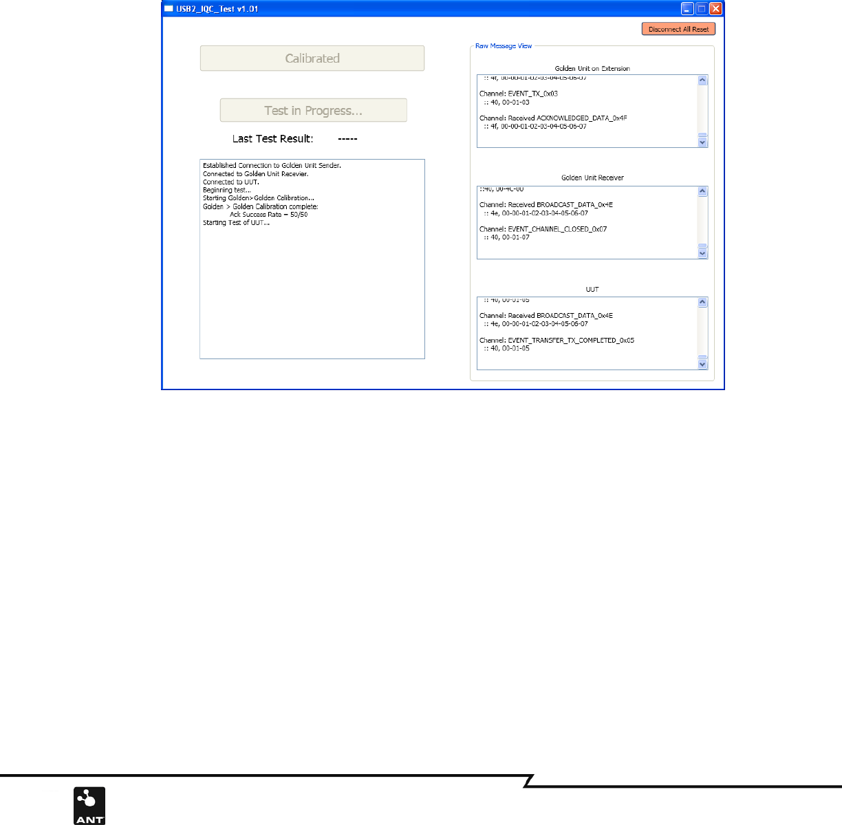 boxes on the right side of the GUI which show the ANT device message transaction status and one text box on