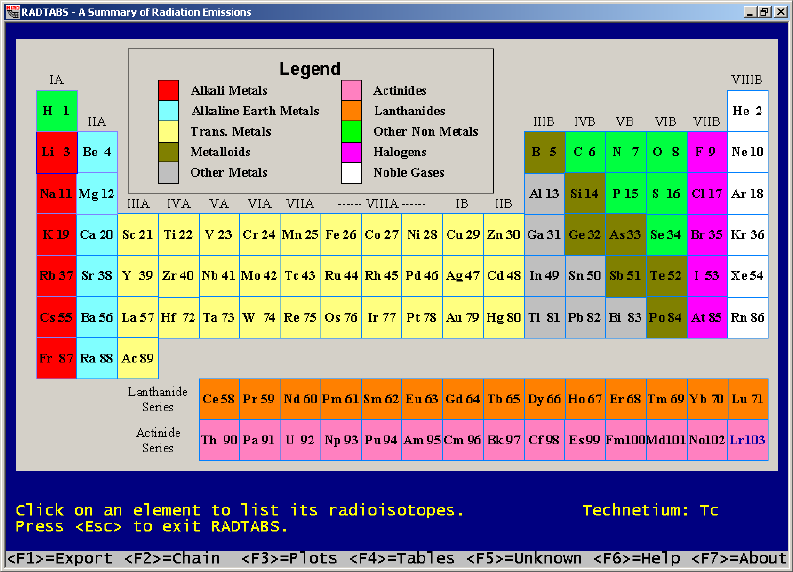 The software RADTABS provides access to the nuclear decay data for a user-specified radionuclide and extracts the