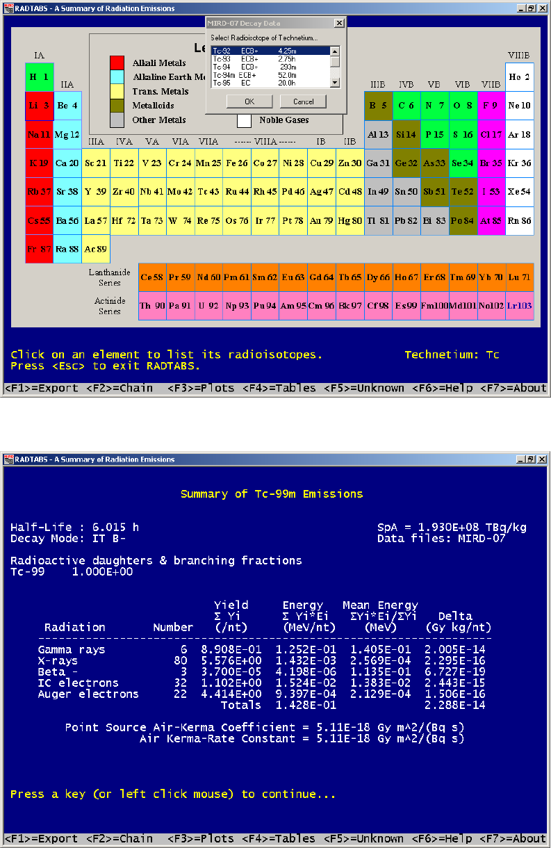 the user to view the decay data in tabular and graphical form. RADTABS is intended for use on a personal computer