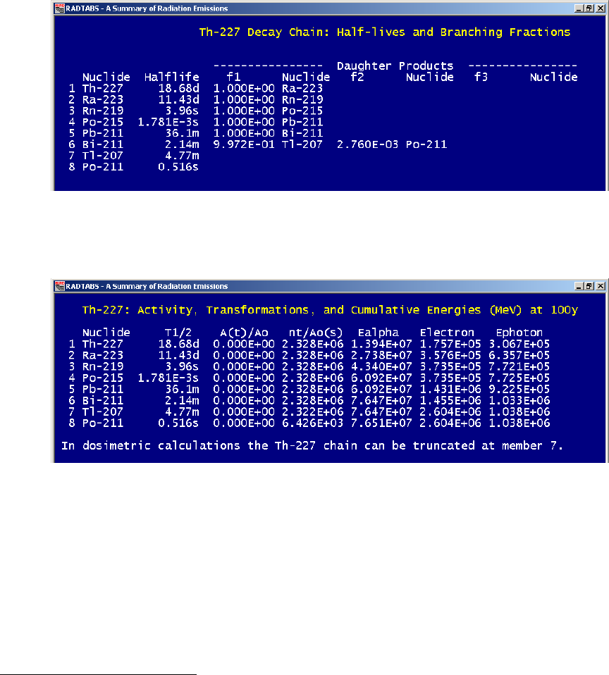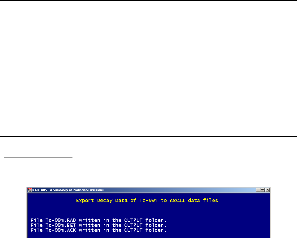 energies and yields of the emitted radiations into ASCII files for use in subsequent calculations. RADTABS enables