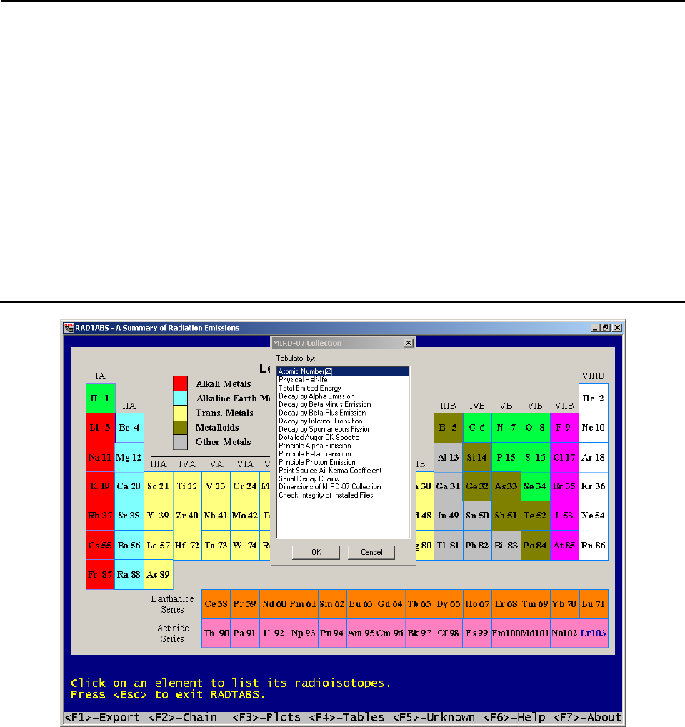 given in Table 1. A file (MIRD-07 LIST.TXT) listing the 333 radionuclides of the MIRD-07 collection is in the
