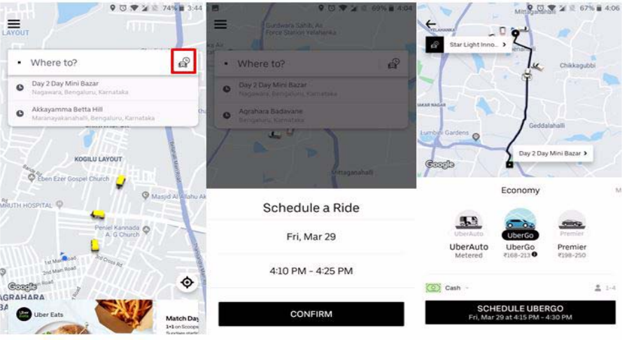 3. Swipe left and select a vehicle from the options (Example: UberGo, UberXL), and then tap