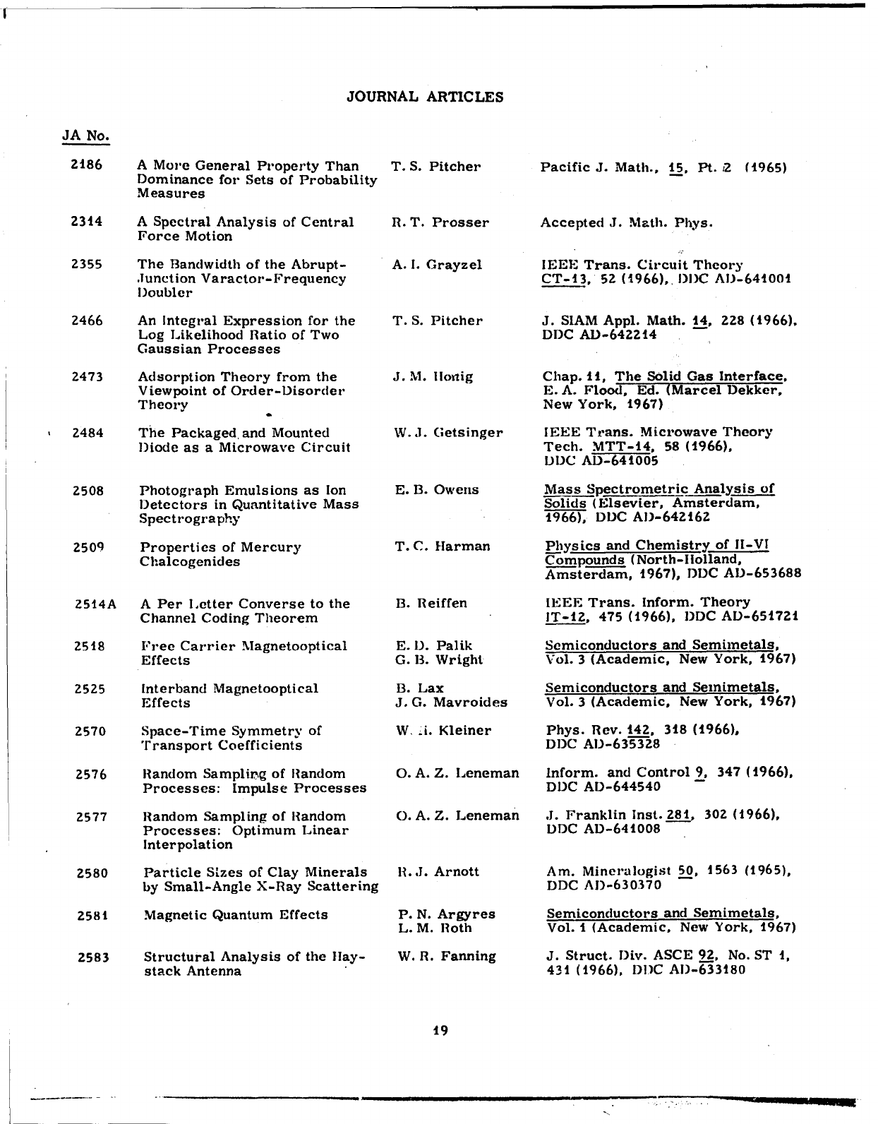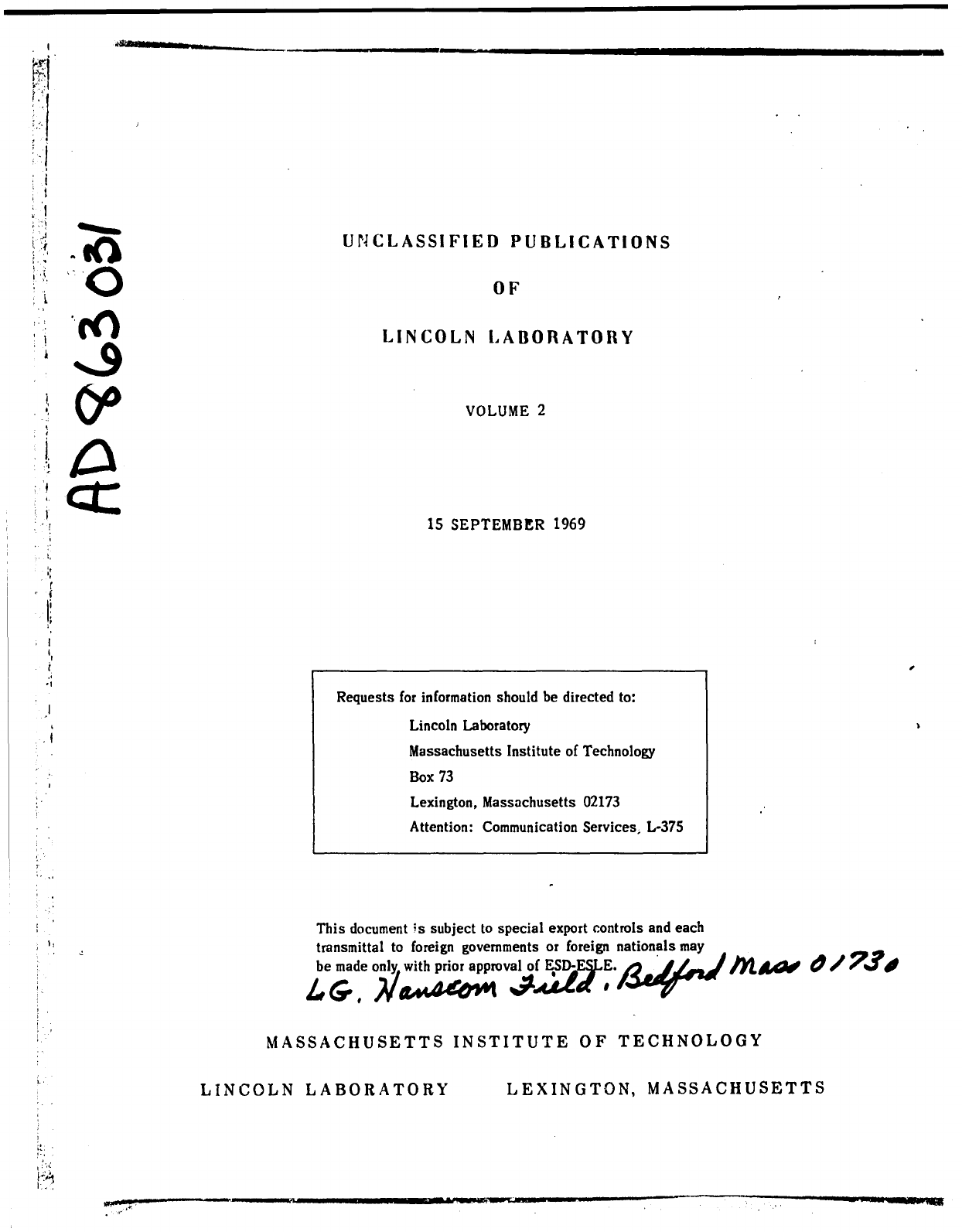 Unclassified_Publications_of_Lincoln_Laboratory_Volume_2_Sep69 Unclassified Publications Of Lincoln Laboratory Volume 2 Sep69