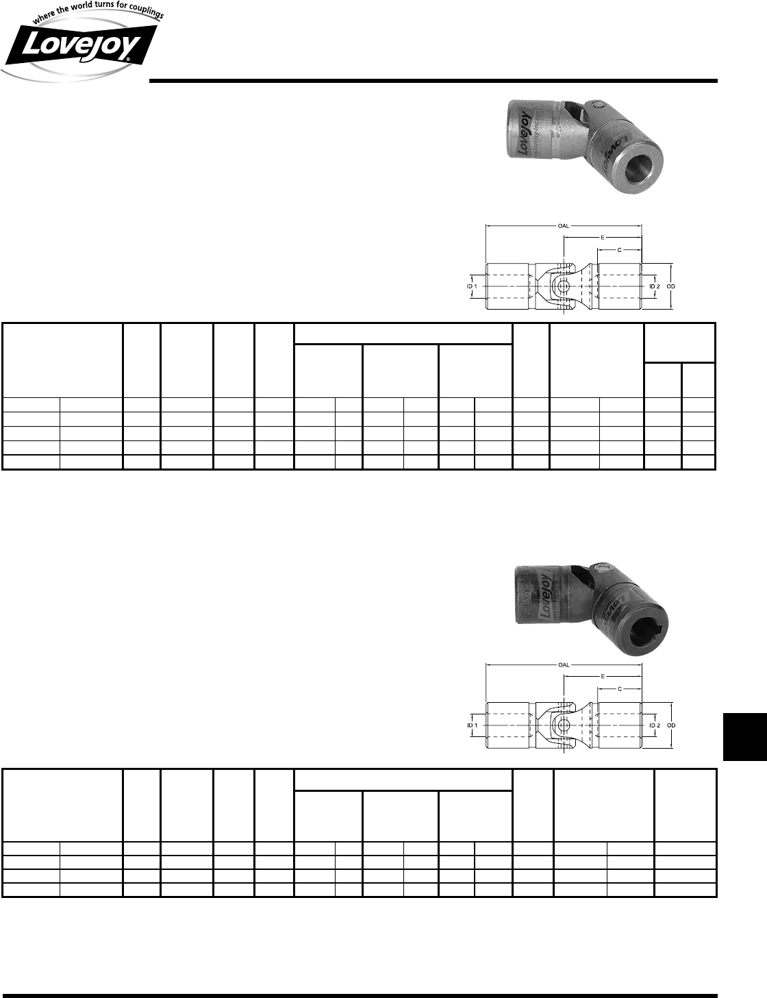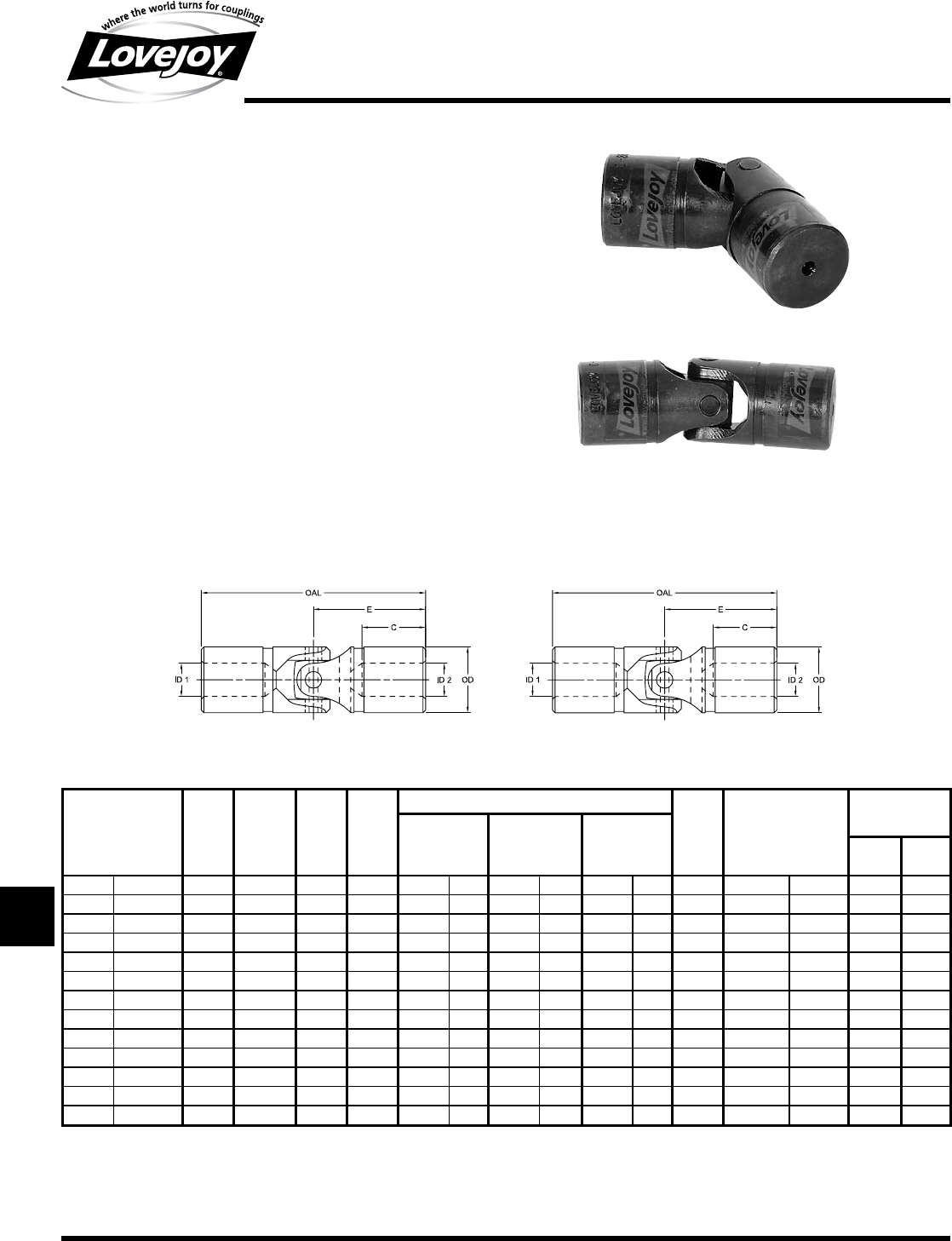 Lovejoy universal joints D, D SS, DD, DDX, HD, and NB come pre-