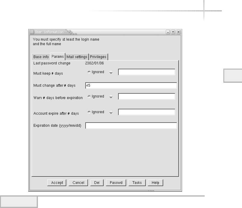 Warn Days field (etc/shadow), 151
