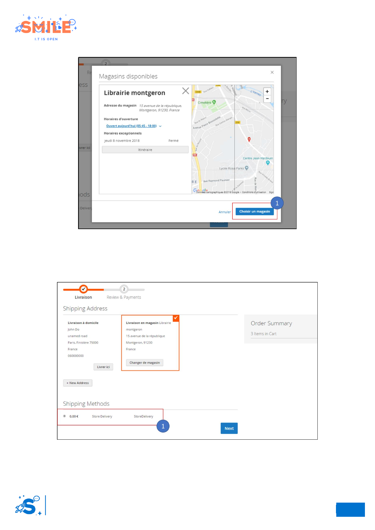 block is replaced by a pop-in with information from the selected shop. From this pop-in,