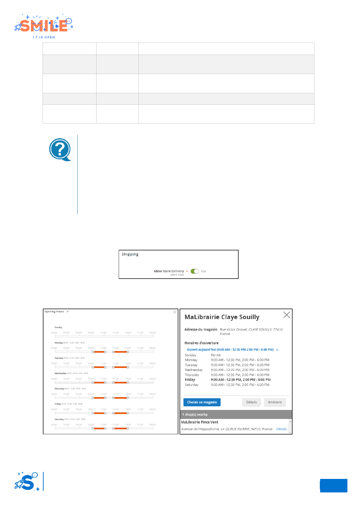 b. Show the opening state of the shop : (open today, imminent closure,…)