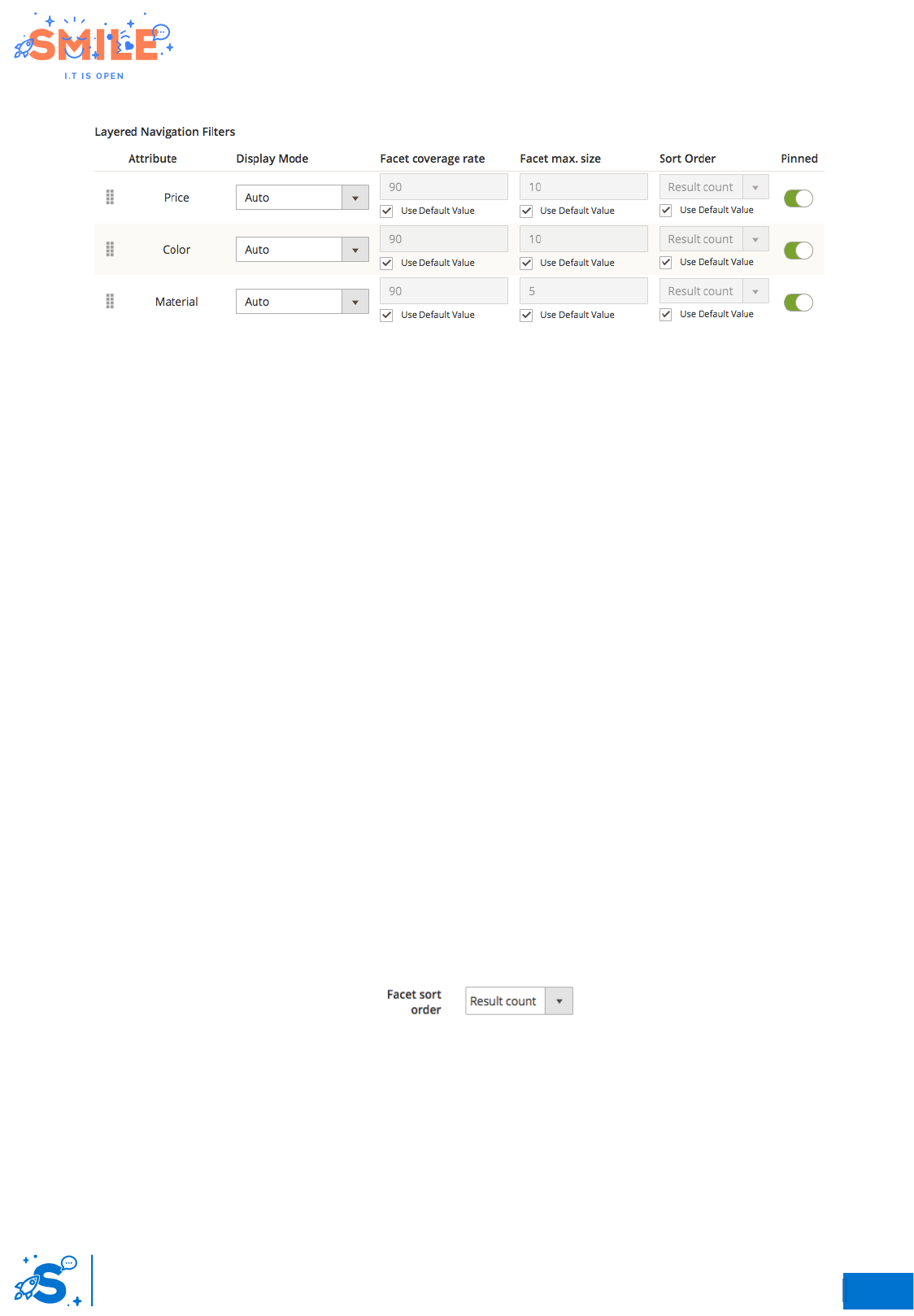 to Yes, and all product attributes with Use in layered navigation set to Filterable.